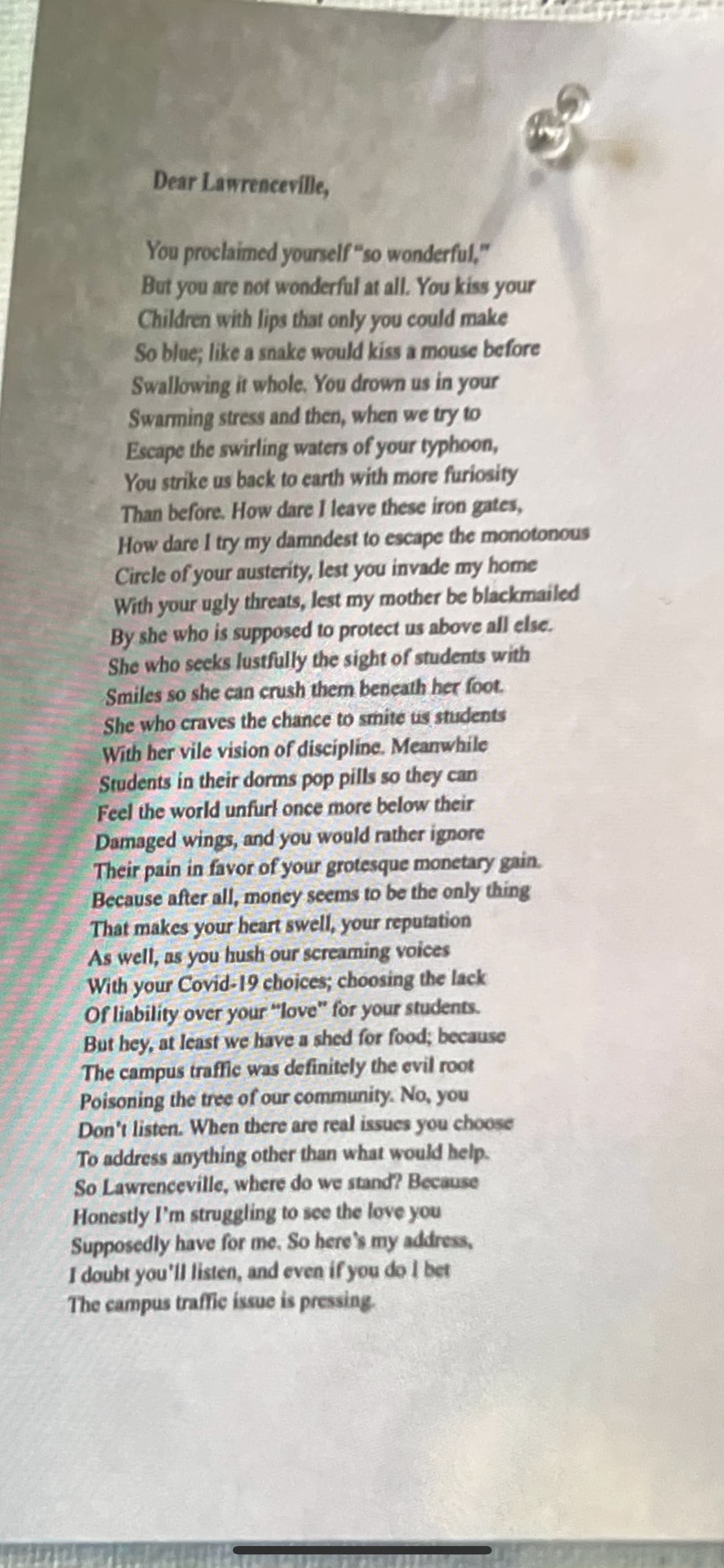 This image was posted around various spaces on Lawrenceville’s campus today. There’s supposedly some backstory behind it, but I’ve only heard rumors and hearsay, so I’d rather not express such ideas.
