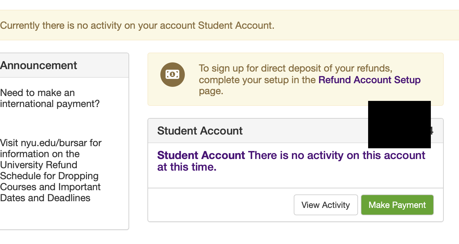 my balance is $0, but I have activity bcz I paid for my NYU program
