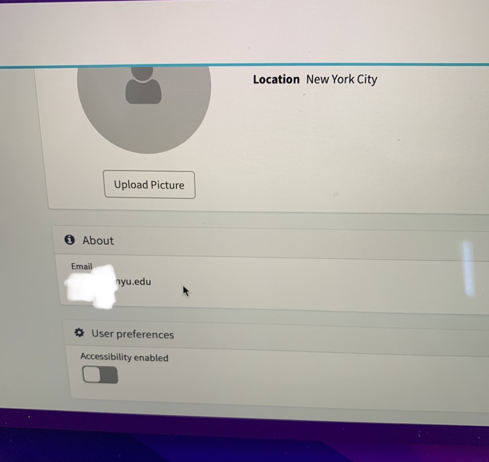 Then thereās an about section with your NYU email