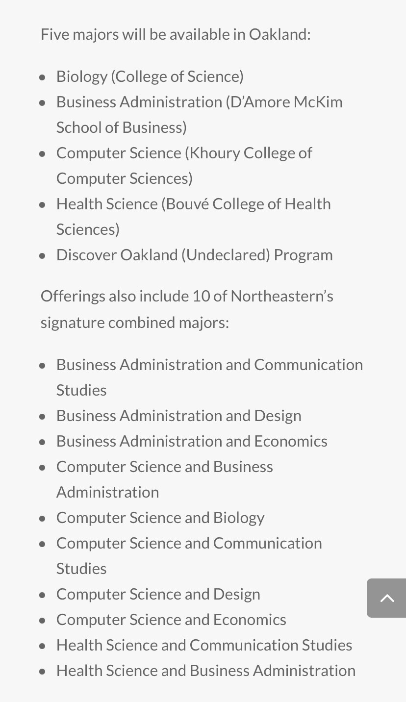 This list of majors offered at the Oakland campus is on the Northeastern website.