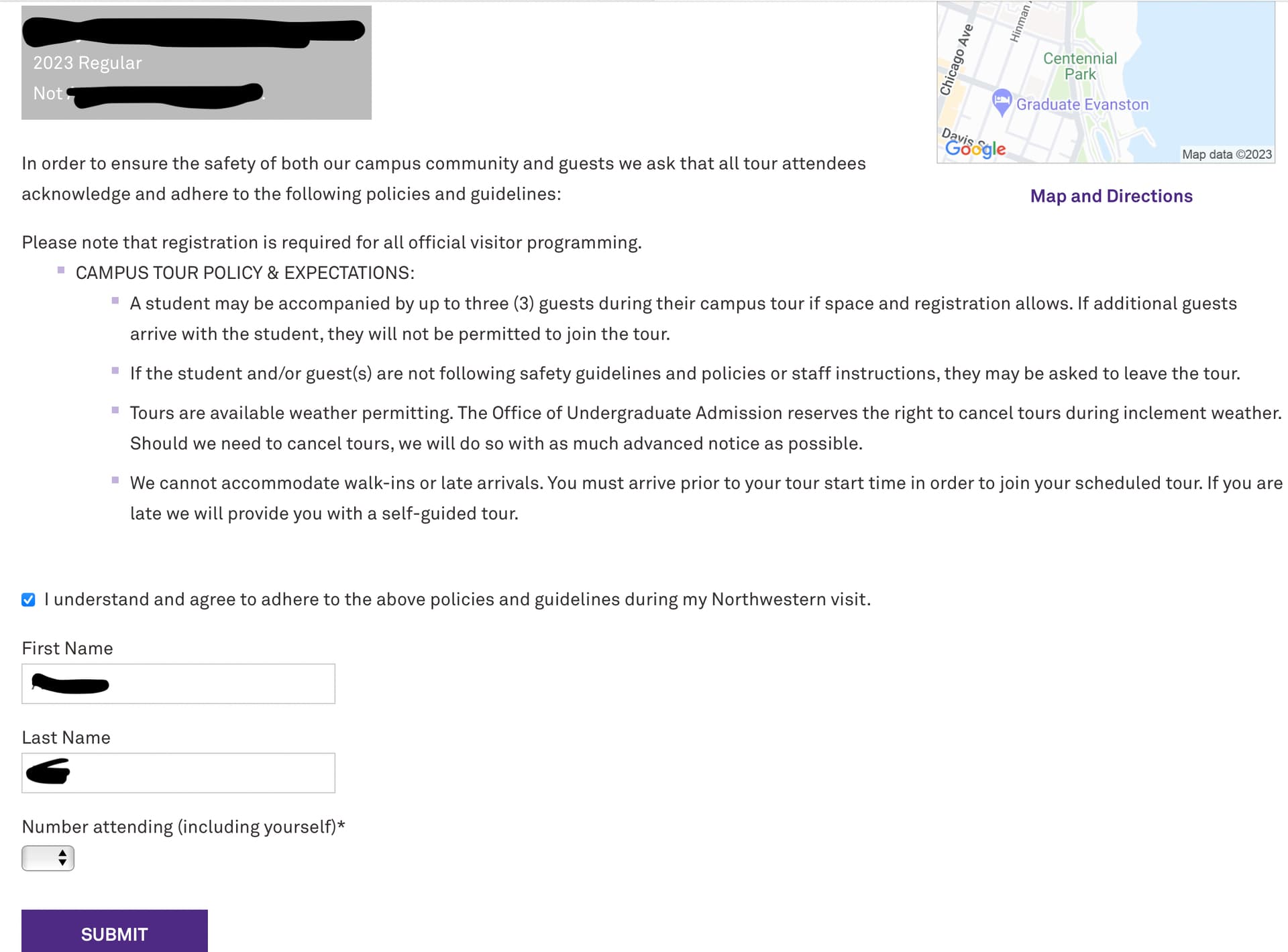 I clicked submit and got " Weâre sorry! Something went wrong. This registration form is for admitted students only. If you have been admitted to Northwestern and are unable to submit this form, please contact us at ug-admission@northwestern.edu. If you have not yet applied to Northwestern (or are awaiting a decision), please visit our website to register for prospect tour."