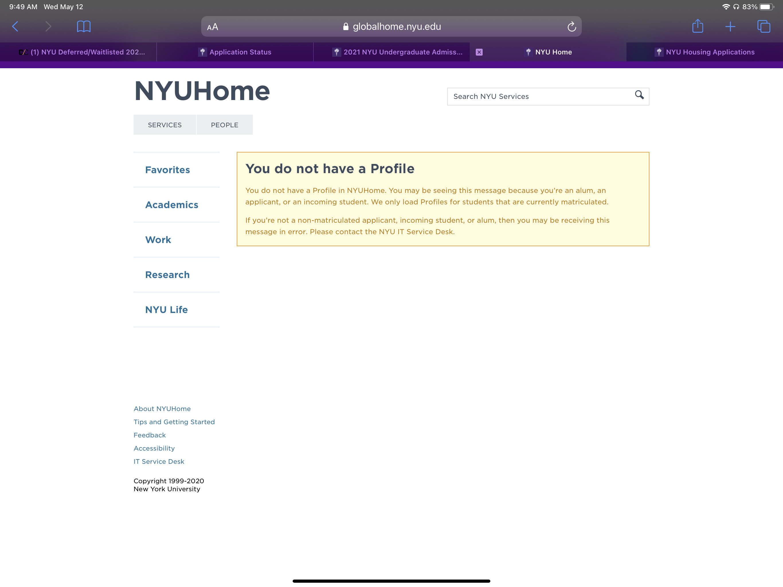 Idk why but I can’t send a photo on this page? I’m 90% sure it’s the right portal (I copied & pasted what mufasak17 said) My like applicant id stuff is on the left & I don’t see any option for spring housing. I applied as a film/tv major at tisch I’m a domestic student and I didn’t apply for fa