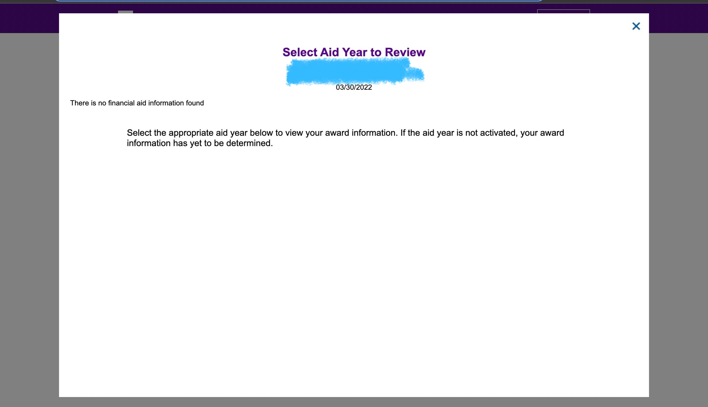 “Select the appropriate aid year below to view your award information. If the aid year is not activated, your award information has yet to be determined.”