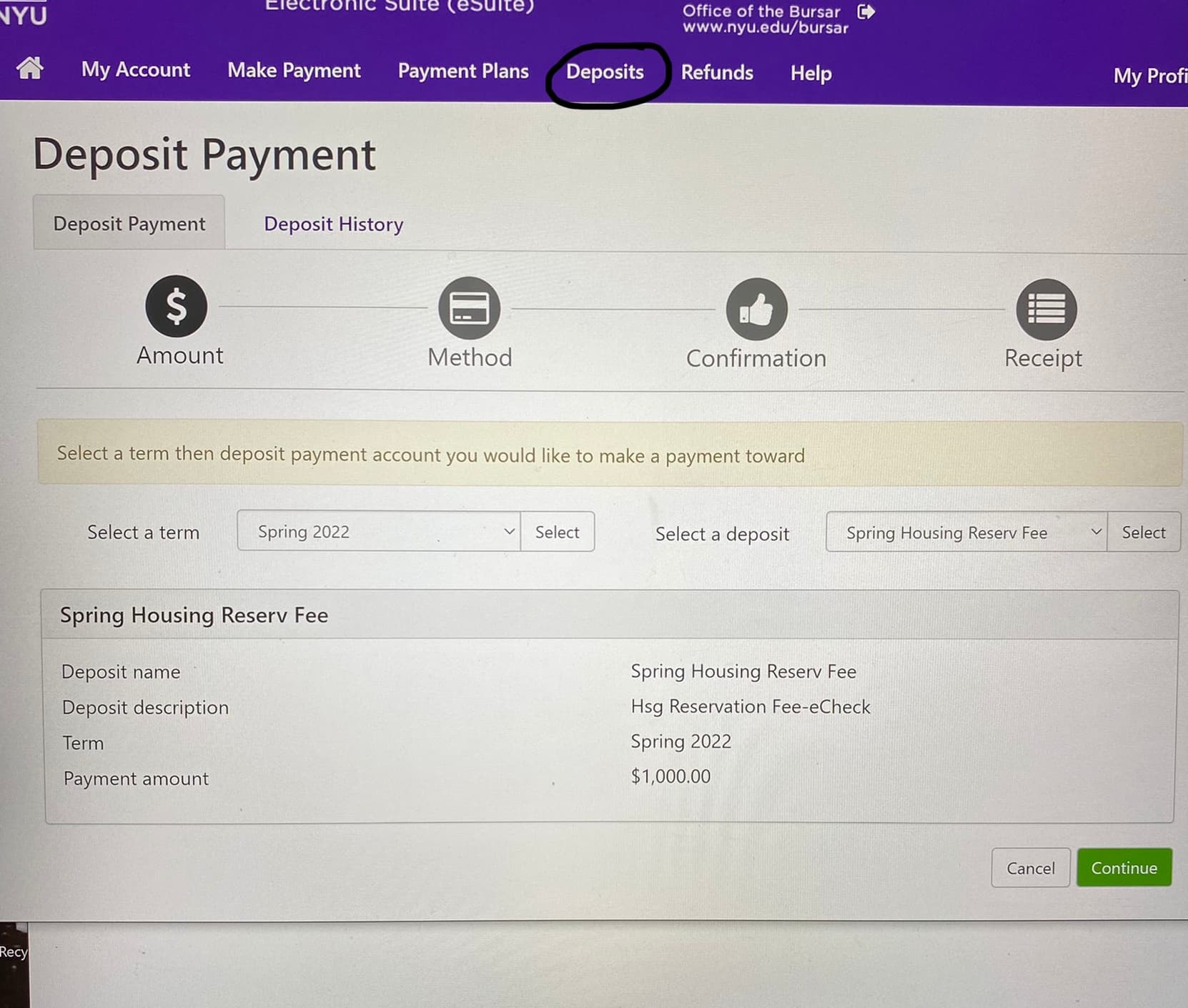 Under the NYU Housing Payments on Albert, what do you guys see for the deposit? I see Spring Housing Reservation and Summer Housing Reservation.