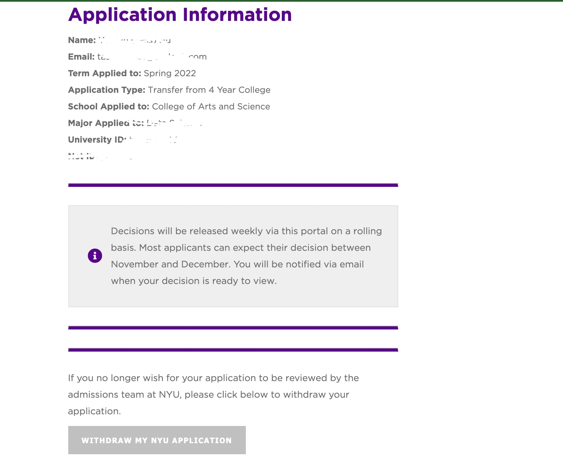 You might have to log out of the application status then to Albert , happened to me