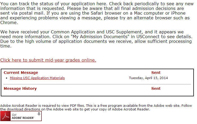 <p>@Karlos no, that is not an SGR. USC is just asking for transcripts that are missing. Are you on a semester system? Did you complete a winter session and not send in your transcripts from that term yet? I ask because some students thought that Winter Session courses would be included in the Spring Grades but it is totally a separate term. As I have said before, USC knows all the schools you’ve ever attended, standing at the school, Start/End date of the term that was enrolled in etc. etc. all from Student Clearinghouse records, they just don’t have your grades unless you submit them.</p>