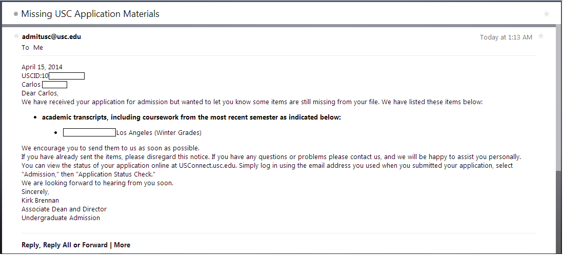 <p>@HopeForMarshall no i am on the quarter system, and i sent them my most updated transcript (winter 2014) a couple days ago. I just received this email this morning. I guess they still have to process my transcript and haven’t update my USConnect yet. </p>