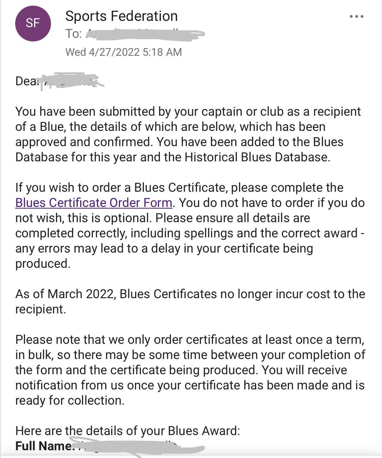 A very big deal. Gets to have her very own “Blues” blazer and become a member of Vincent’s Club. Well done for her!