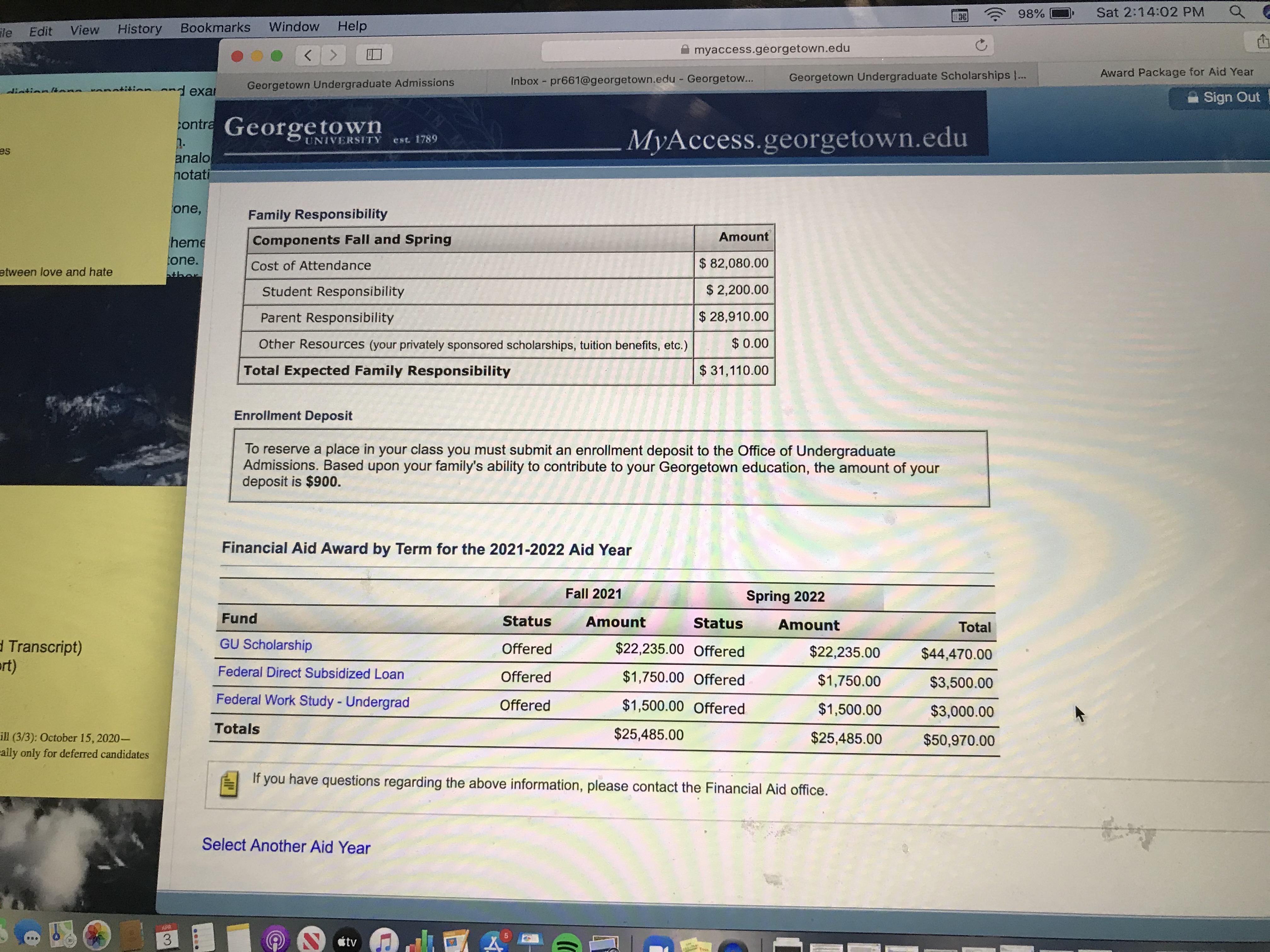 As of now it is slightly more than affordable. We think around $20000 we can manage. But EFC is $34000. But another think that confuses me is this- Georgetown has given us $51000 and the contribution from parents is 34000. When I read in the website it says the tuition is $54000, boarding and room is 16000 and the books and fees are like $3000, total of $73000. The difference between the the aid they gave and this is like $22000. Then how did they come up with 34000?