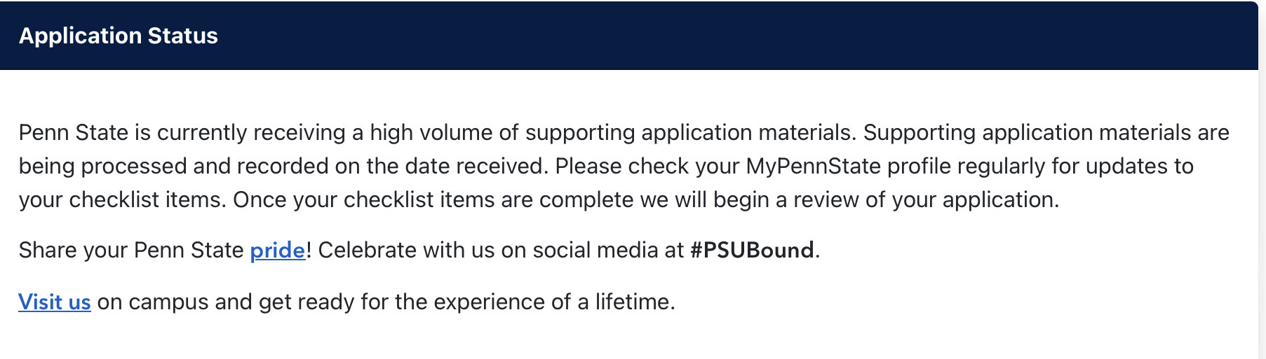 My son is EMS as well and got the update too (with the #PSUBound tag). My son is Geosciences. What is yours?