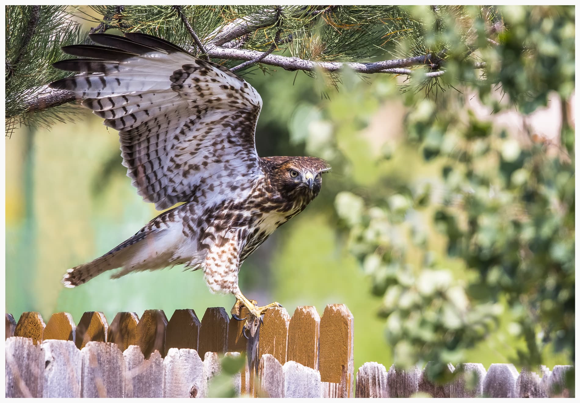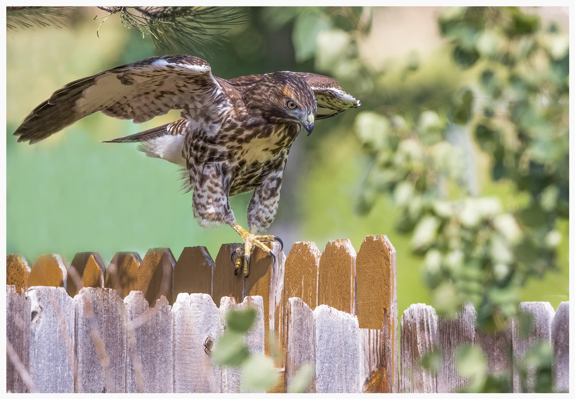 This beauty didn’t come to visit this morning for some sweet nectar. My next door neighbor started raising chickens and rabbits in their backyard, and this Red-tailed hawk’s appetite peaked…