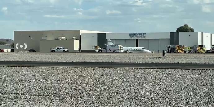 Private jet landing at Scottsdale airport veers off runway and crashes into a parked business jet.