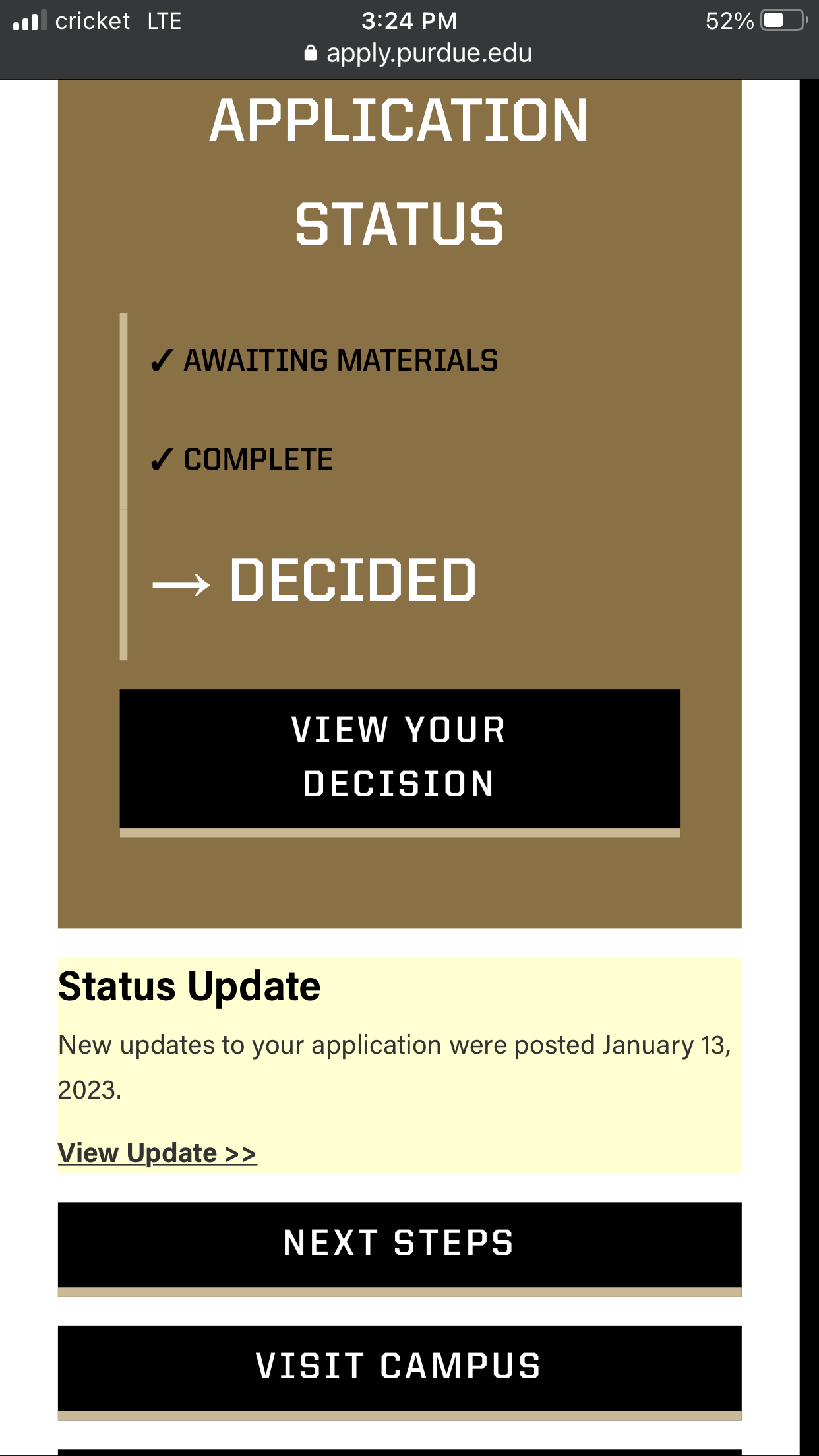 Not until financials in February or notified earlier in the year. Not with this. Very few merit at Purdue