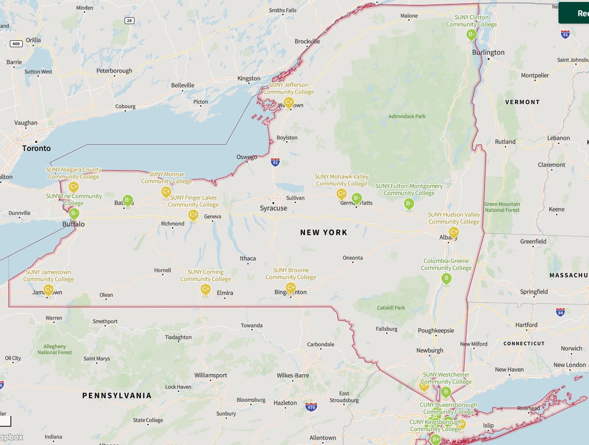 Thinking that perhaps some of the SUNYs were classified as 2-year programs (with some Bachelor’s), I pulled up the 2-year programs on Niche: