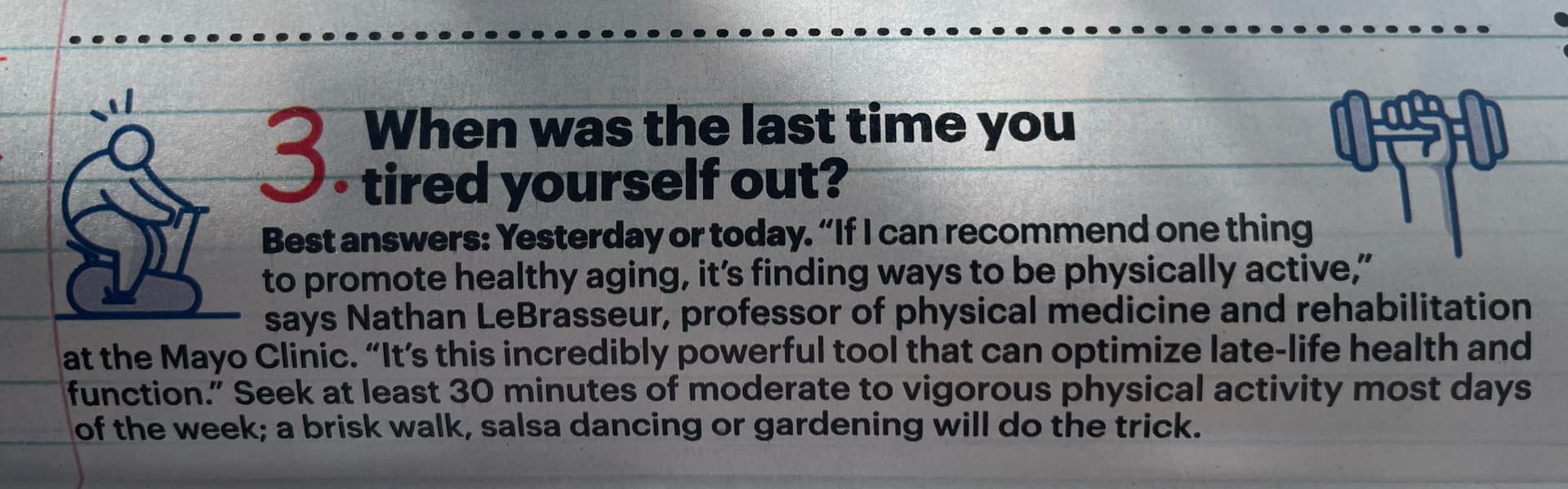 “… a brisk walk, salsa dancing or gardening will do the trick.”