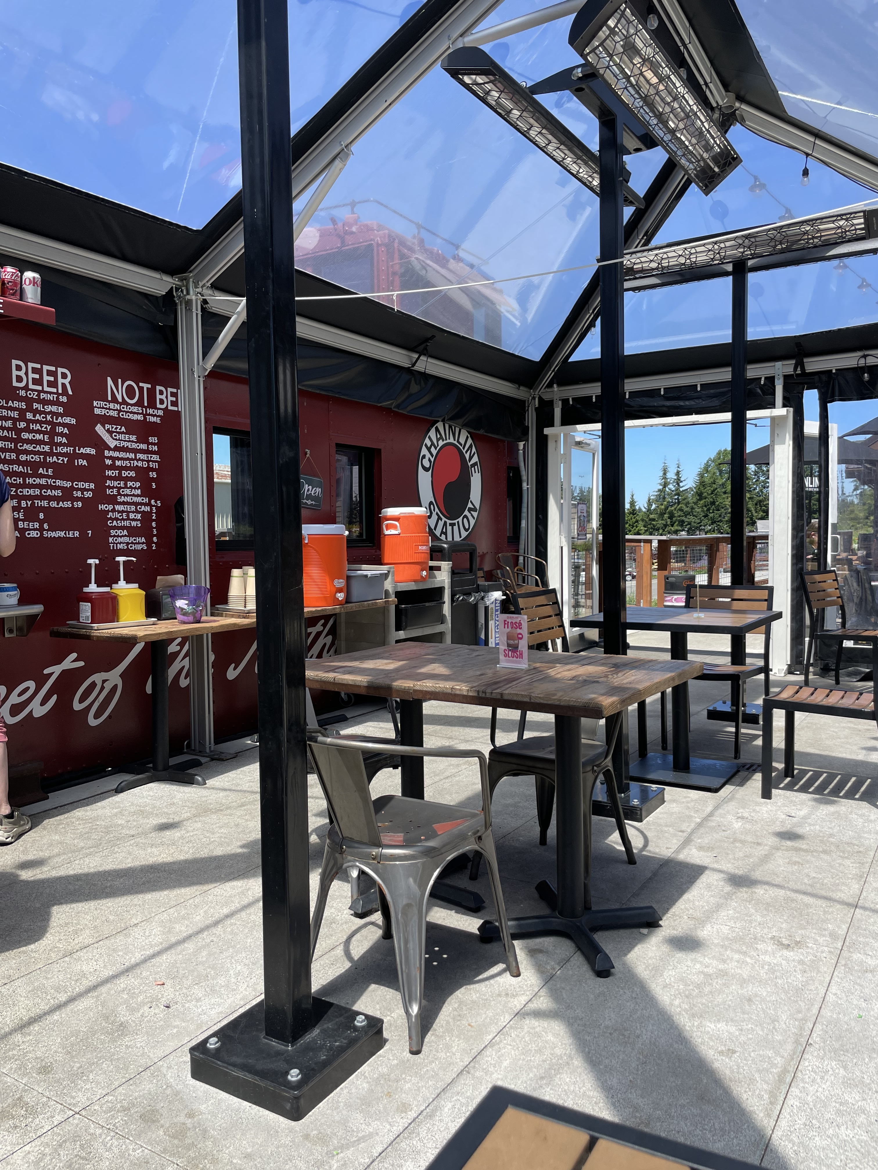 to get some refreshments on the way home after watching the parade downtown. I had a Frosé (rose wine slushy) and Mr. got a brewski. Hit the right spot!