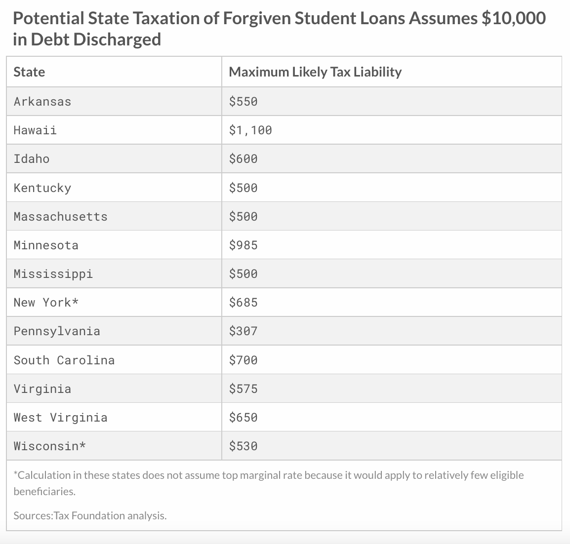 Since my sons with loans live in one of these states, I have a question. How can you tax debt forgiveness? They’re not suddenly going to have that additional $. They just won’t be making payments from their income for it over the next xxx years.