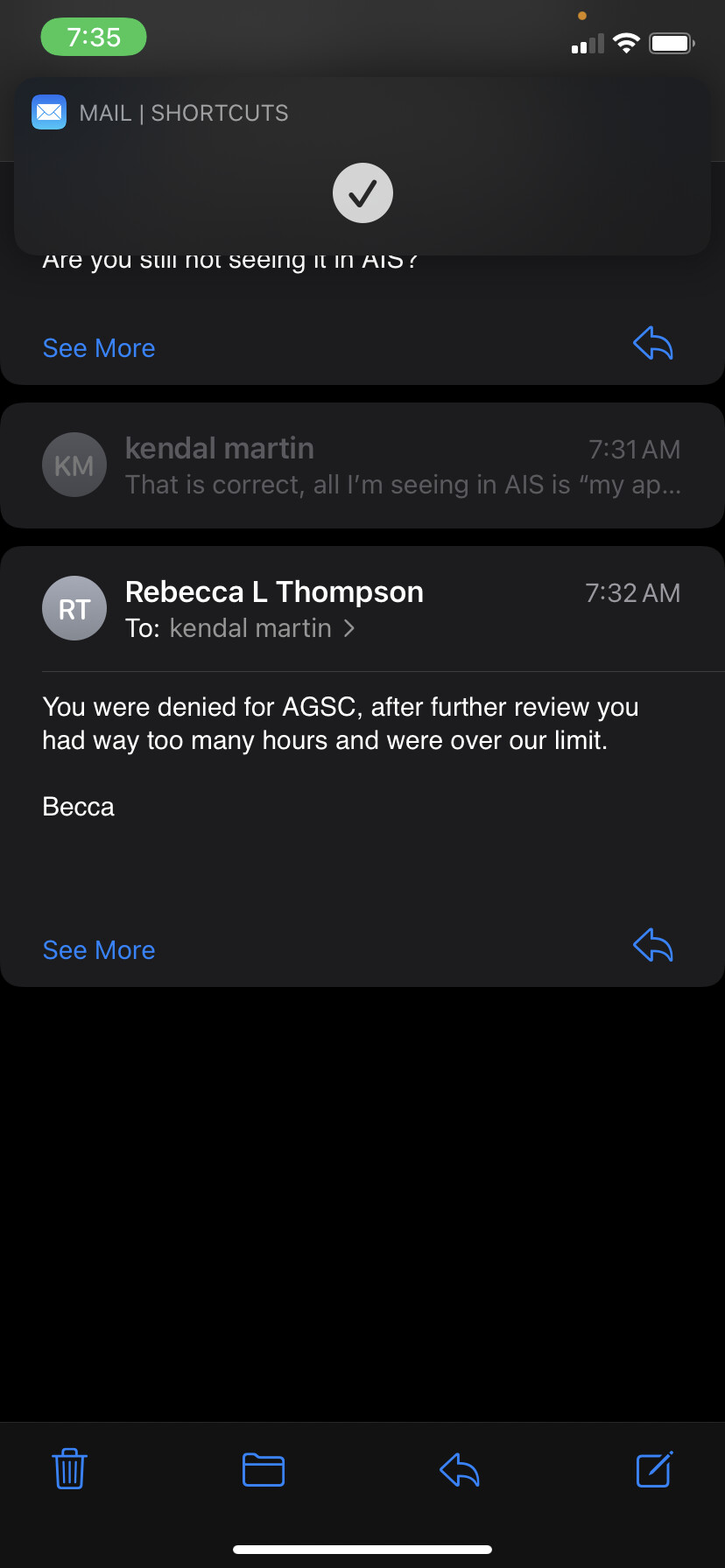 This is what I received from the counselor this morning that I’ve been in contact with… I went in with 87 hours and the maximum amount of hours is 84, I have several emails from her directly stating she would personally work on my application to get me to reach the amount of hours I need.