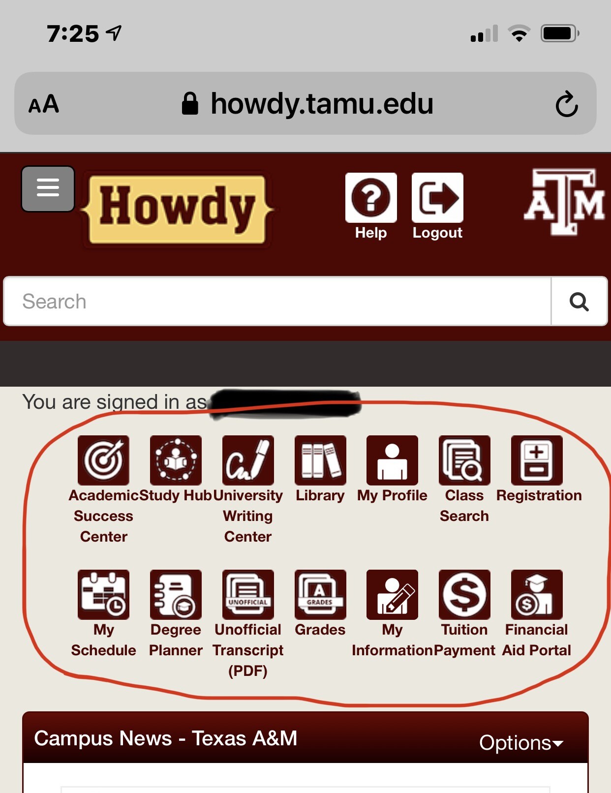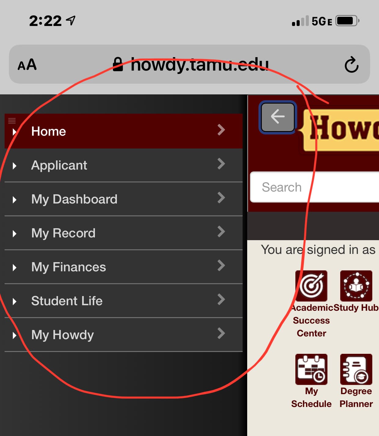Here’s a phone view of what it looks like when Howdy “changes.” You will notice a lot more maroon menu selections appear and the number of menu tabs will increase to 7. If you notice these changes it is likely you will see a Congratulations message in AIS soon!