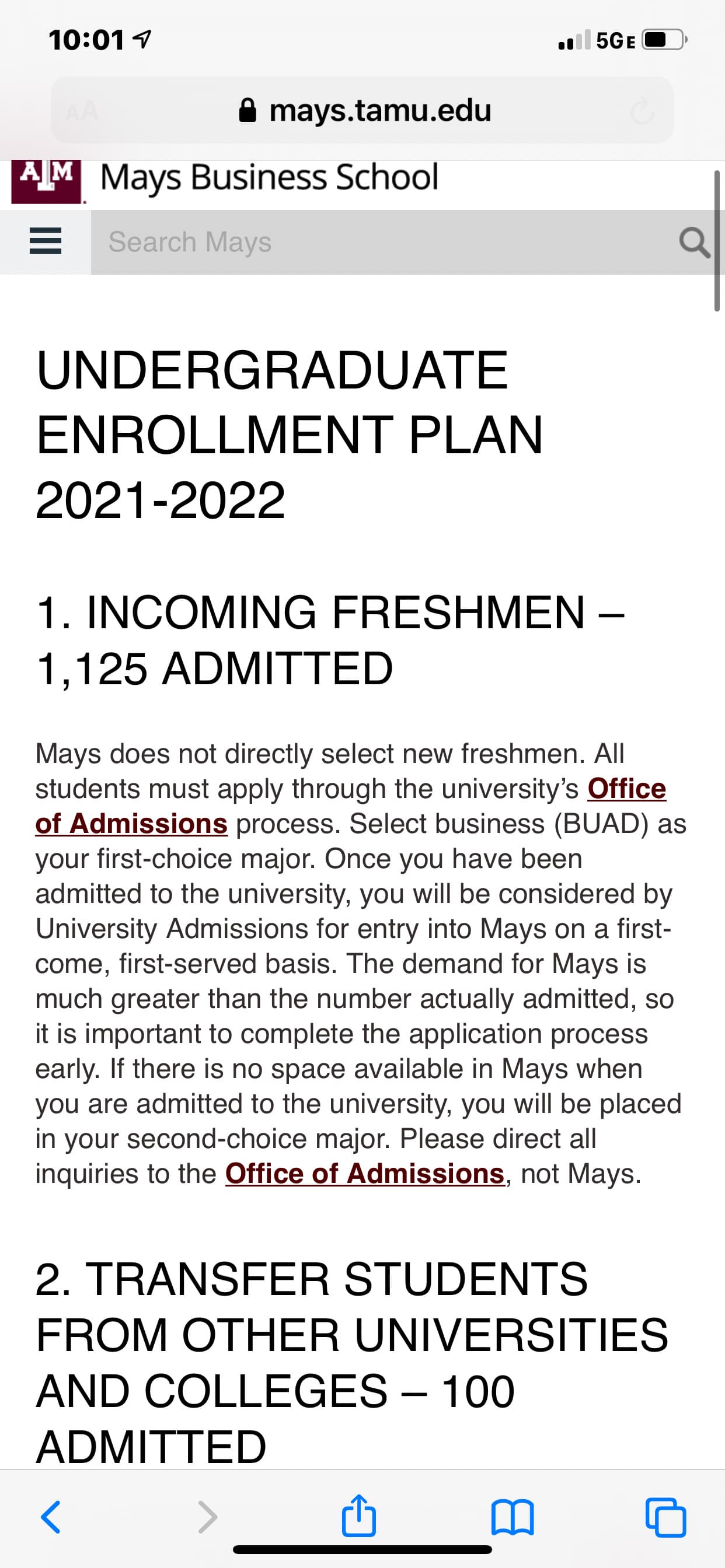 Mays typically takes 1000 freshman. Last year they took 1100.