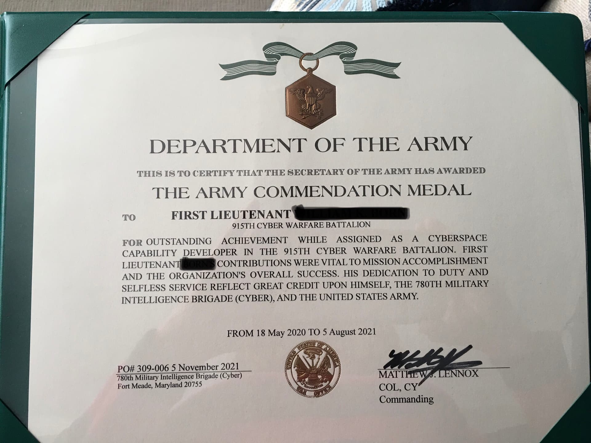 Earlier this week, our son received a commendation medal for software he developed and demo’d in Guam and Yuma last summer: