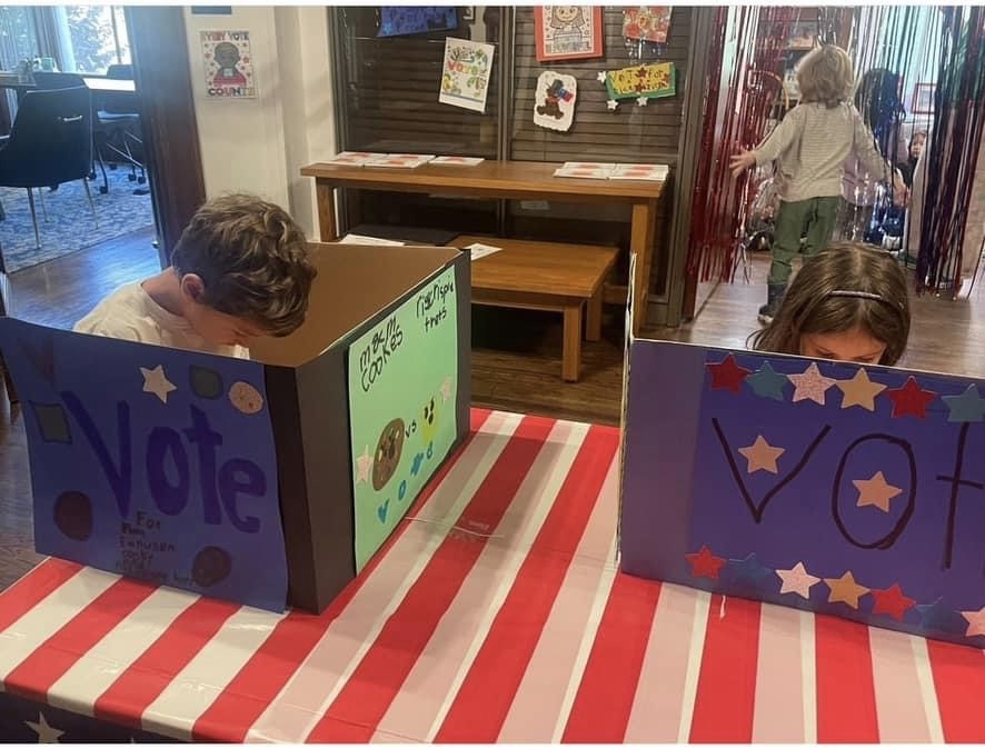 The twins came home today wearing “I voted” stickers. (Same one mom & dad got when they voted last week.)