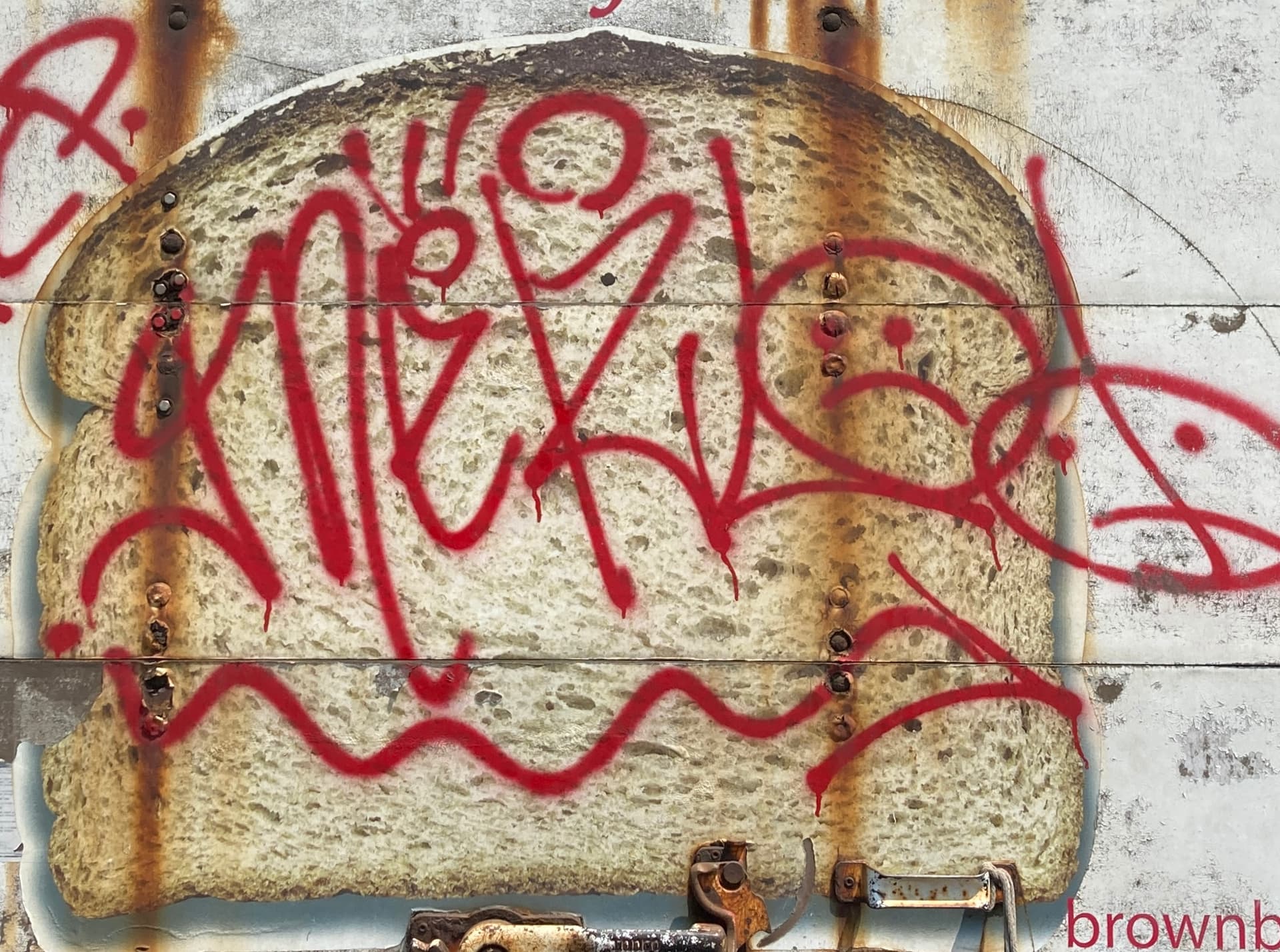 I was just in the car, running an errand for work, and ended up behind a graffitti-ed bread truck. The first thing that flashed into my brain was, “Outsider Art. Looks like a Twombly.”