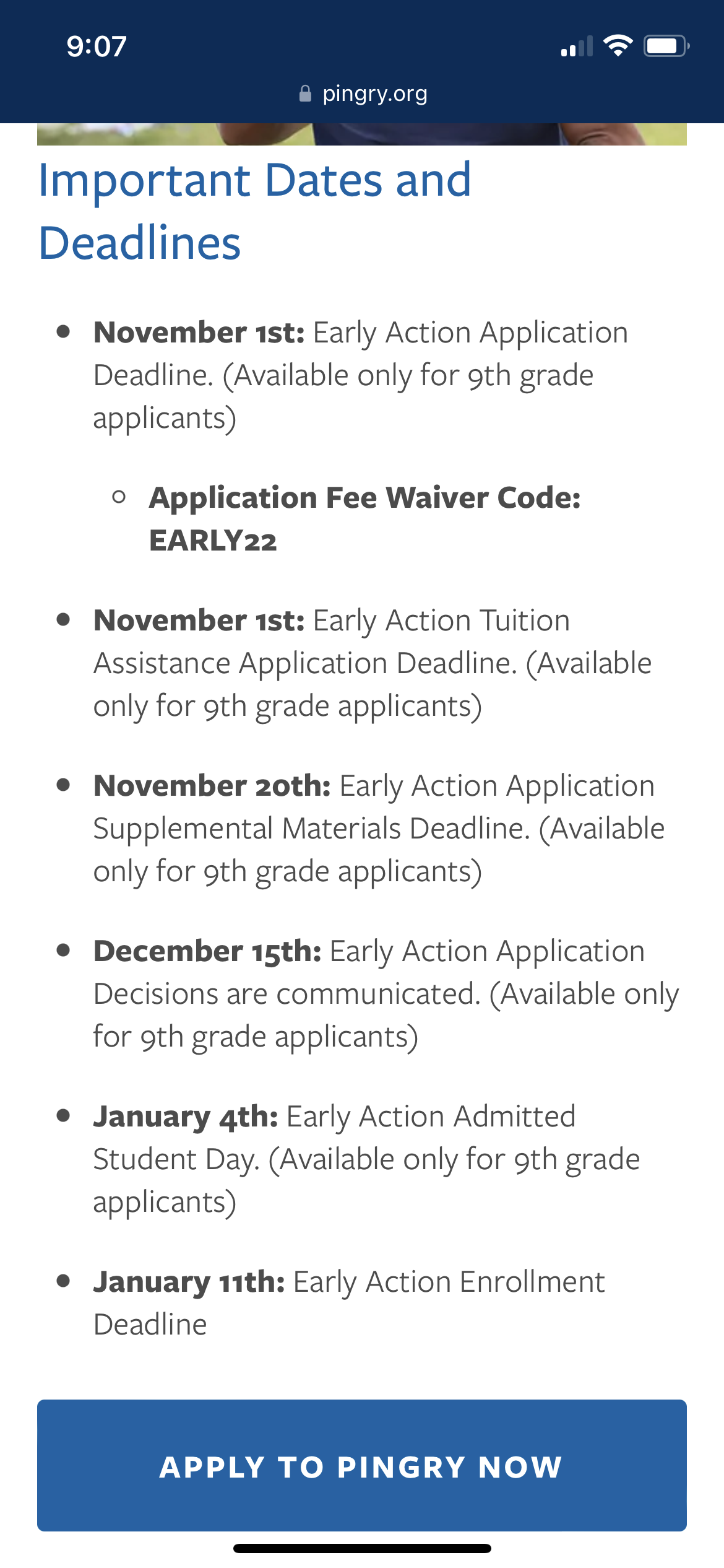 Surprising Pingry school has EA by oct 1st and already decision came out in December and half of students already joined in Dec.