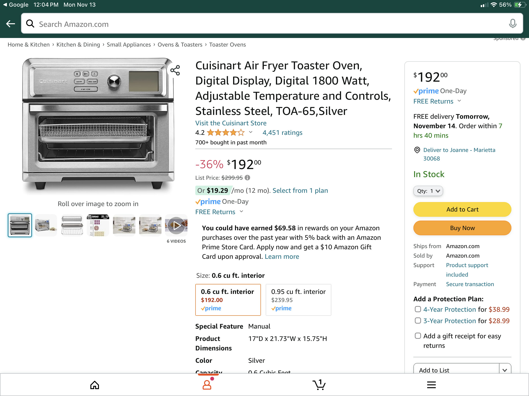 Our kids use it the most, but I thought maybe I would take this opportunity to not only opt for one with an air fryer feature (for things like frozen french fries), but also since it is a bigger oven than the one that just broke, we could actually use it for things we use our regular oven for esp now that we are nearly empty nesters. It would be nice to not have to heat up our large oven if we don’t need to when cooking just for the two of us.