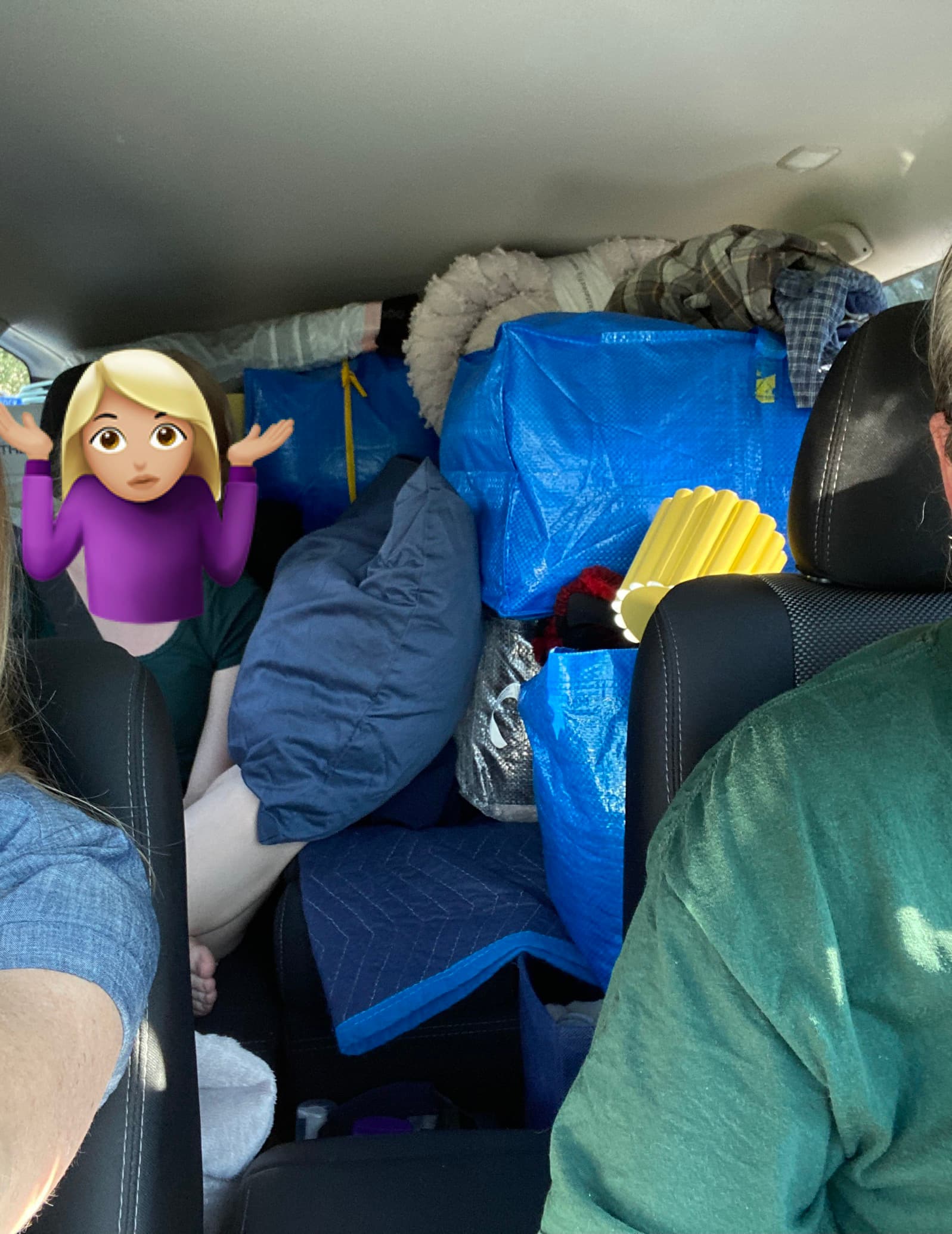 Literally BOUGHT a larger car the day before move in to fit stalecrumb’s stuff. (Granted, the old car was falling apart - barely made it home from BS last spring - as in, we pulled into our driveway and a cloud came out of the hood as we parked.)