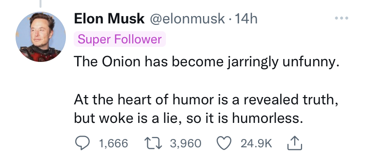 Also, regarding the linked NPR article accusing Musk of threatening them, they have an obvious bias, but the author speaks as though he is a third party. They find a professor to label what Musk did as an “extraordinary threat”, and go on to say about Twitter’s removal of NPR’s government-funded label, “Musk has since removed the labels, but the outlets originally targeted have not resumed public activity on Twitter.”