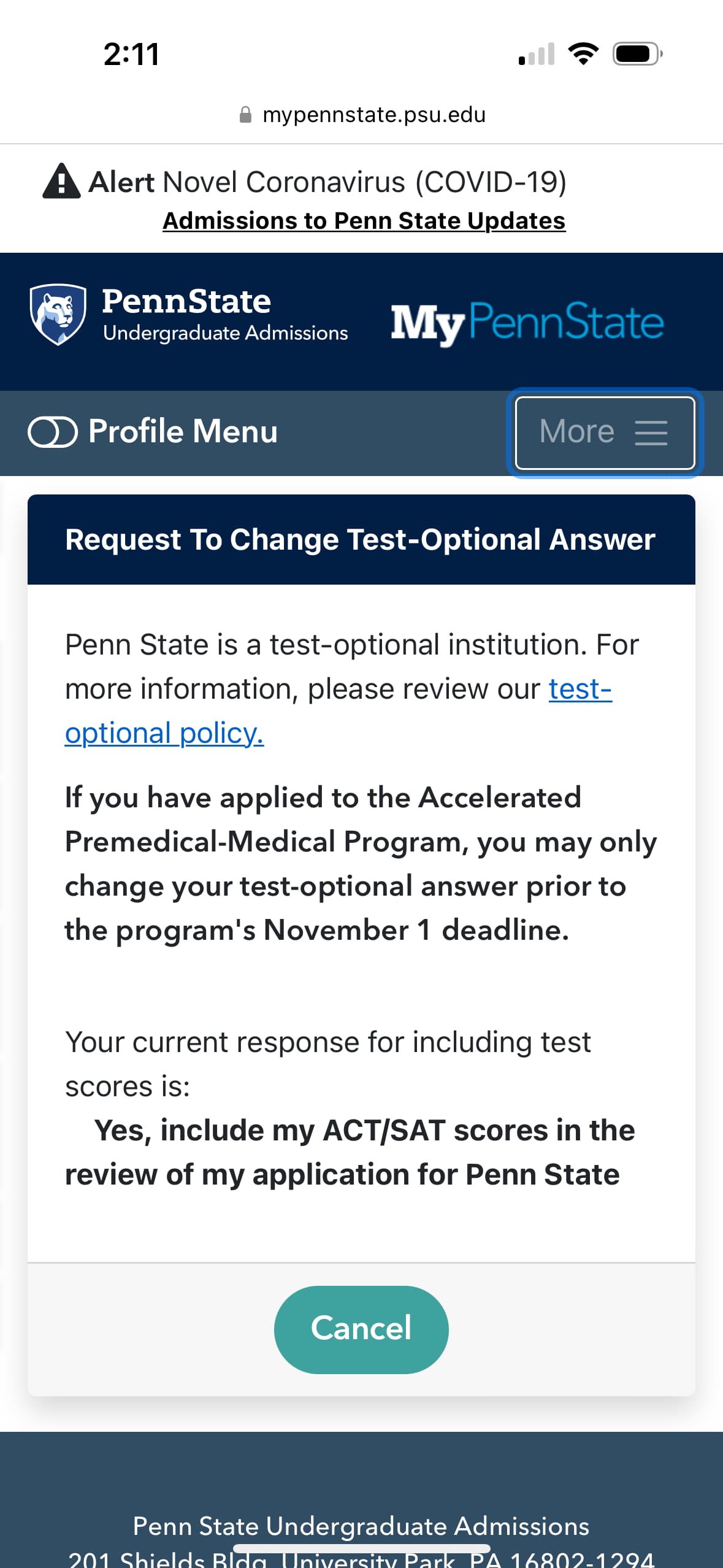 Did you get a response from Penn State on your request to consider test-optional? What did they say?