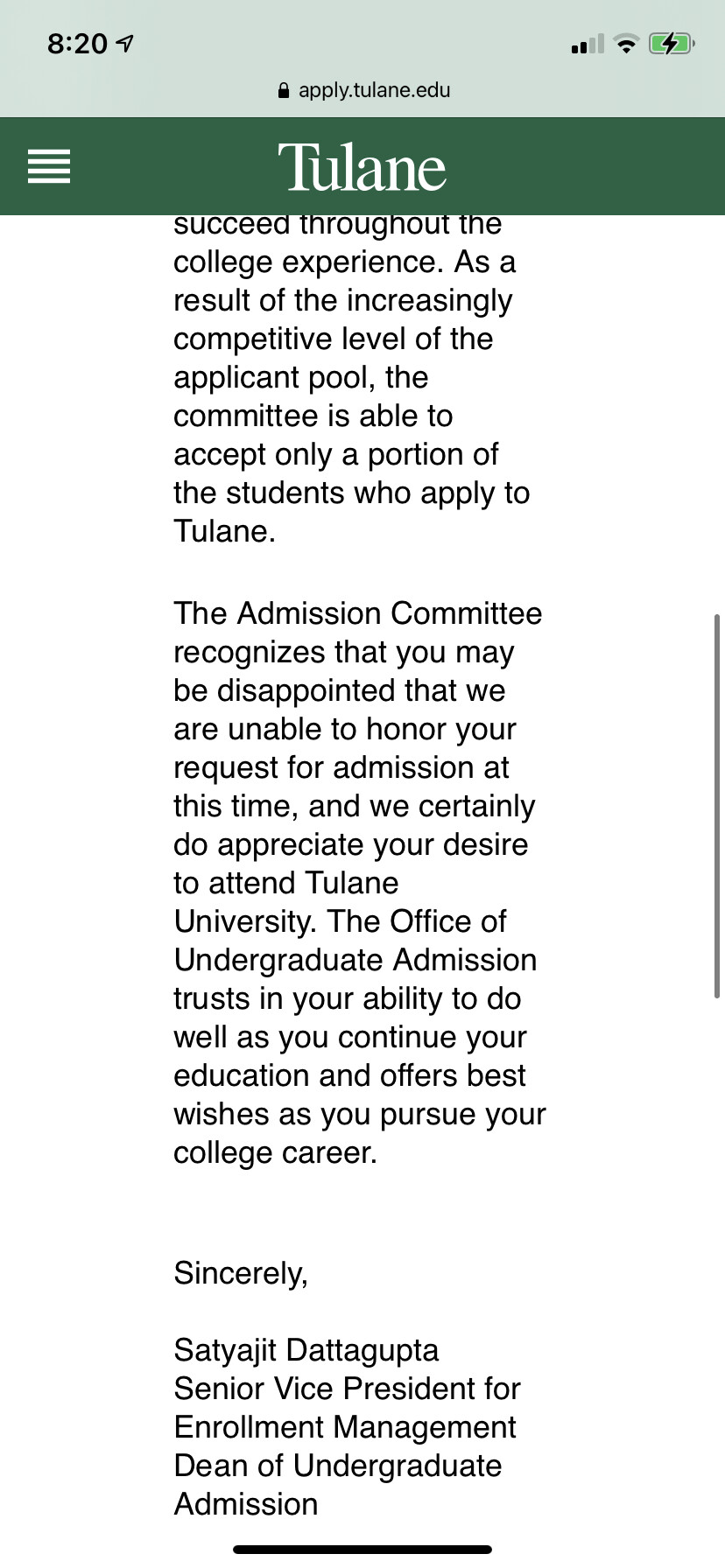 Wow I hope you get into Tulane. Tulane is in an incredibly fun city, diverse student group, amazing professors. You can never be bored in Nola!