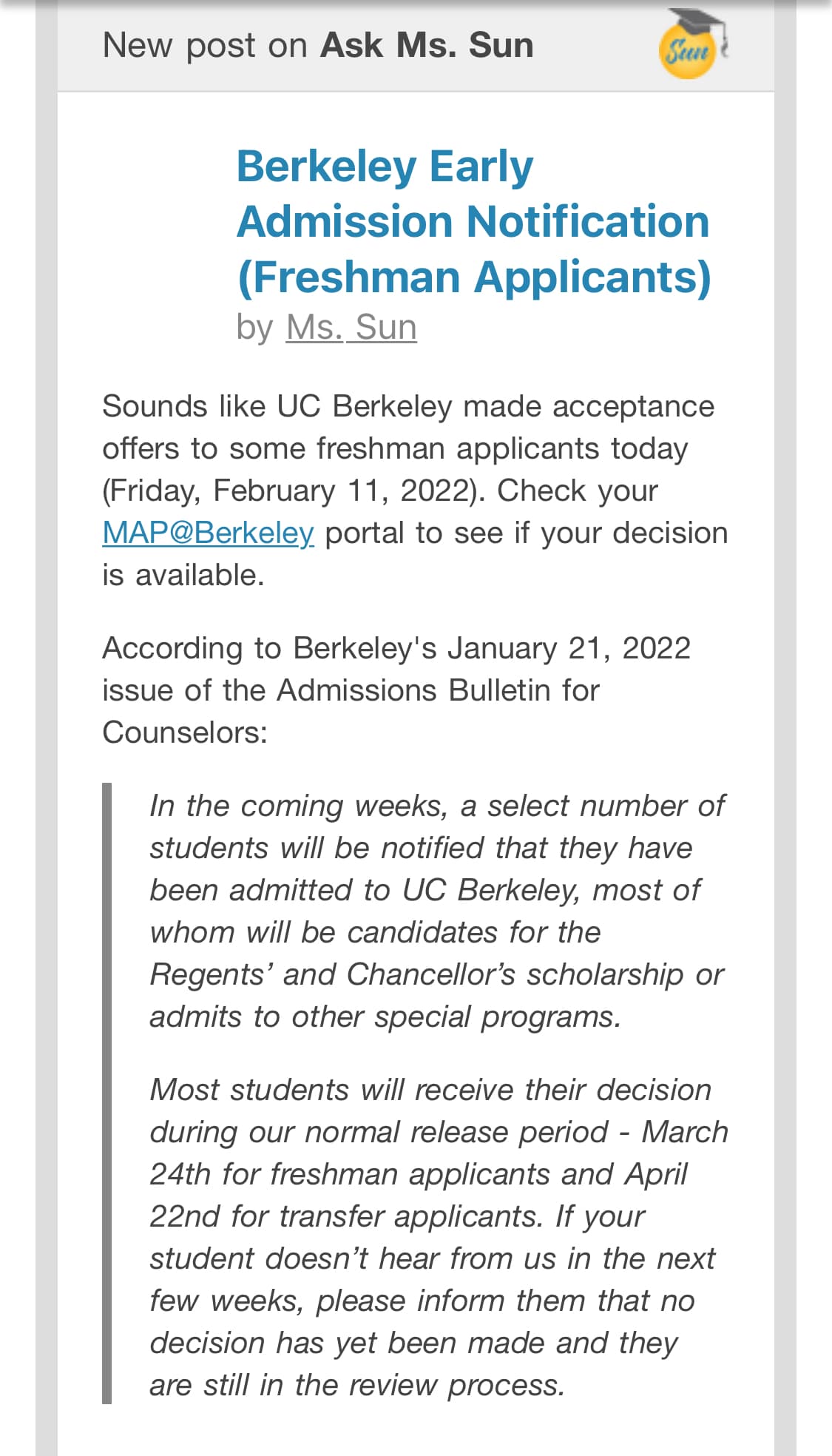 MET decisions came out. My friend’s daughter got in. She got an email today.