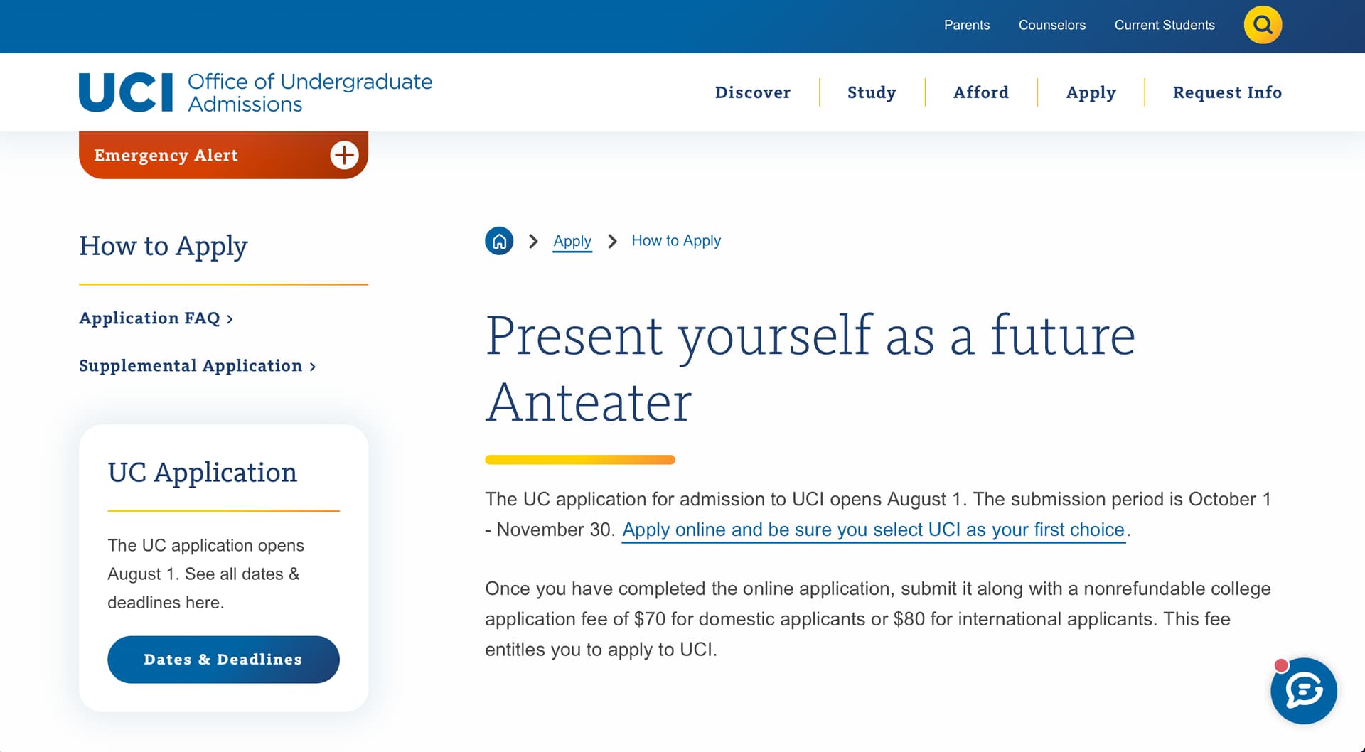 On the UCI webpage under admissions and how to apply it is highlighted ‘Apply online and be sure to select UCI as your first choice’.