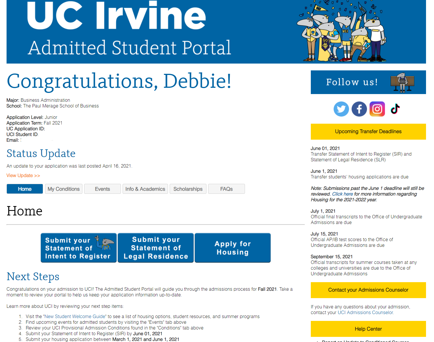 Everyone who got accepted should join the UCI Transfer Class of 23 facebook page!!! Also the instagram ucitransferclassof23 !!! GOOD JOB EVERYONE