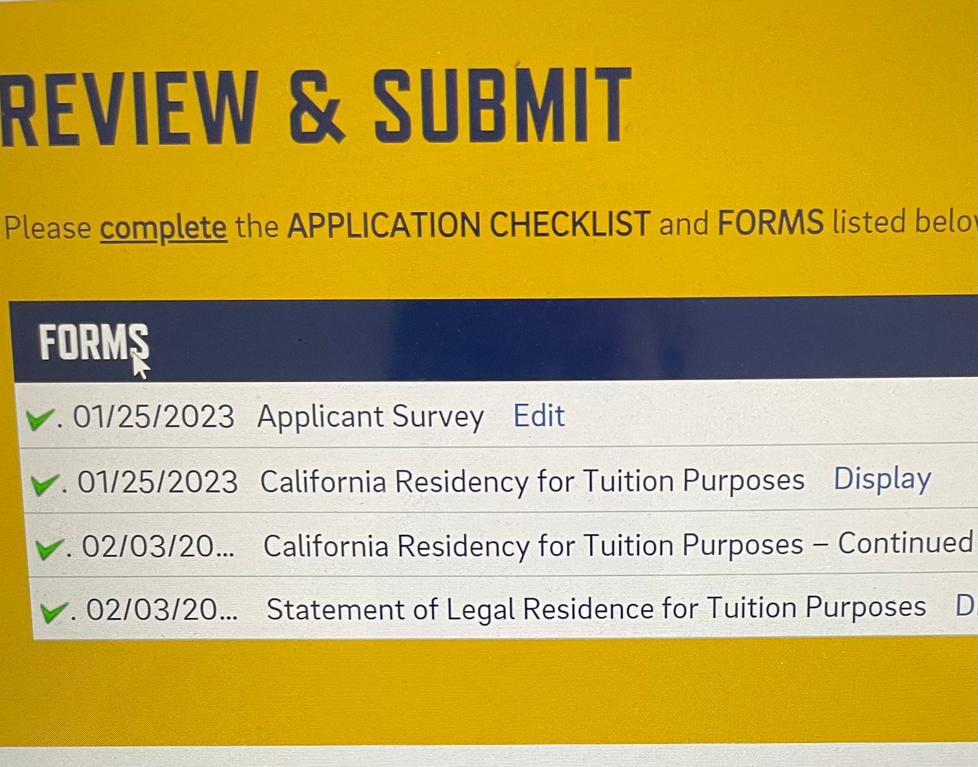 Thanks. We have been asked and submitted a ton of paperwork with respect to one of the parent’s CA residency status. But we haven’t seen any kind of determination of residency for tuition. Just the questionnaire and requests for documents.