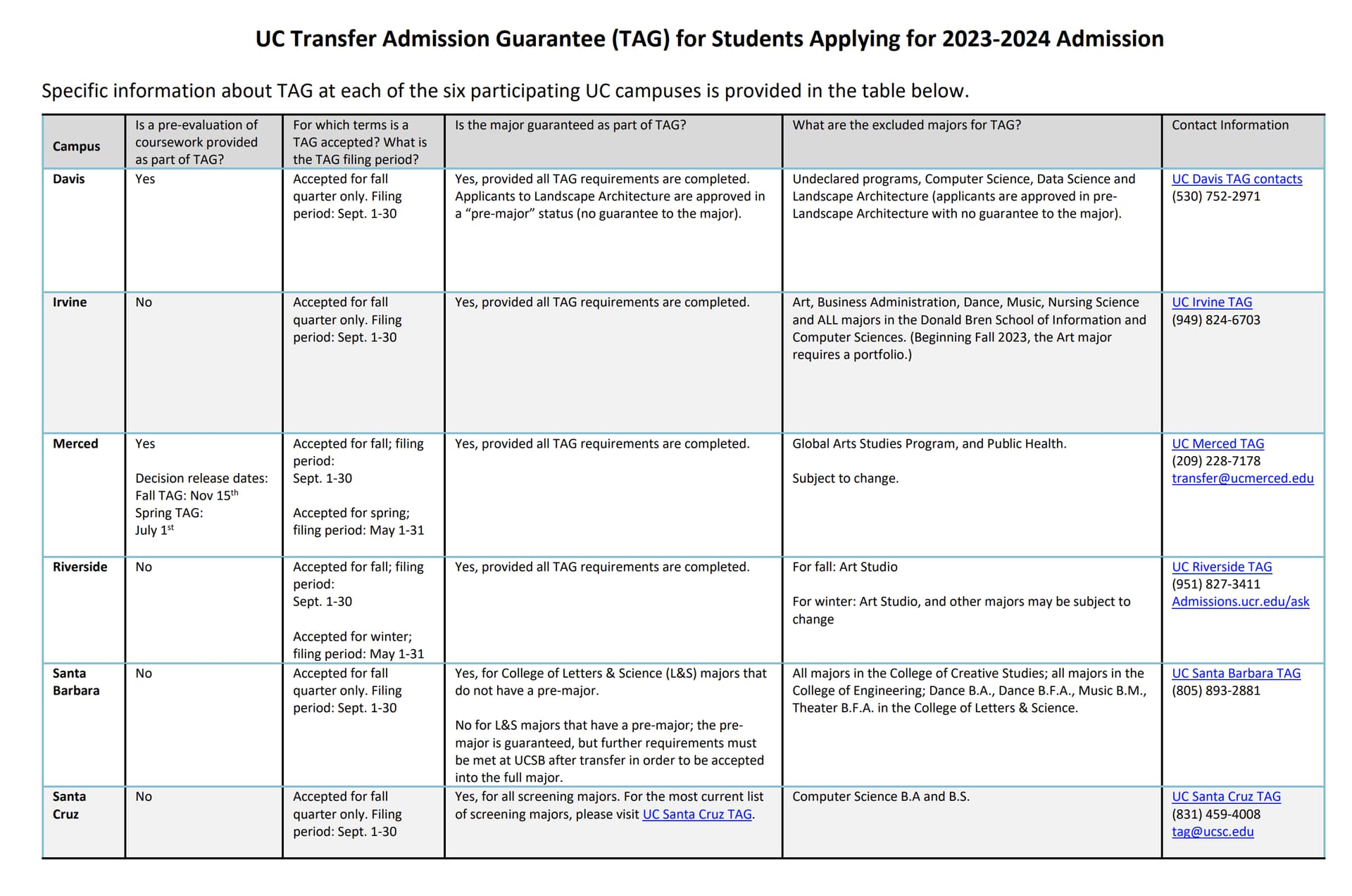 If you’re shooting for CS or Data Science or other engineering majors, TAG is not guaranteed. See below from official UC website: