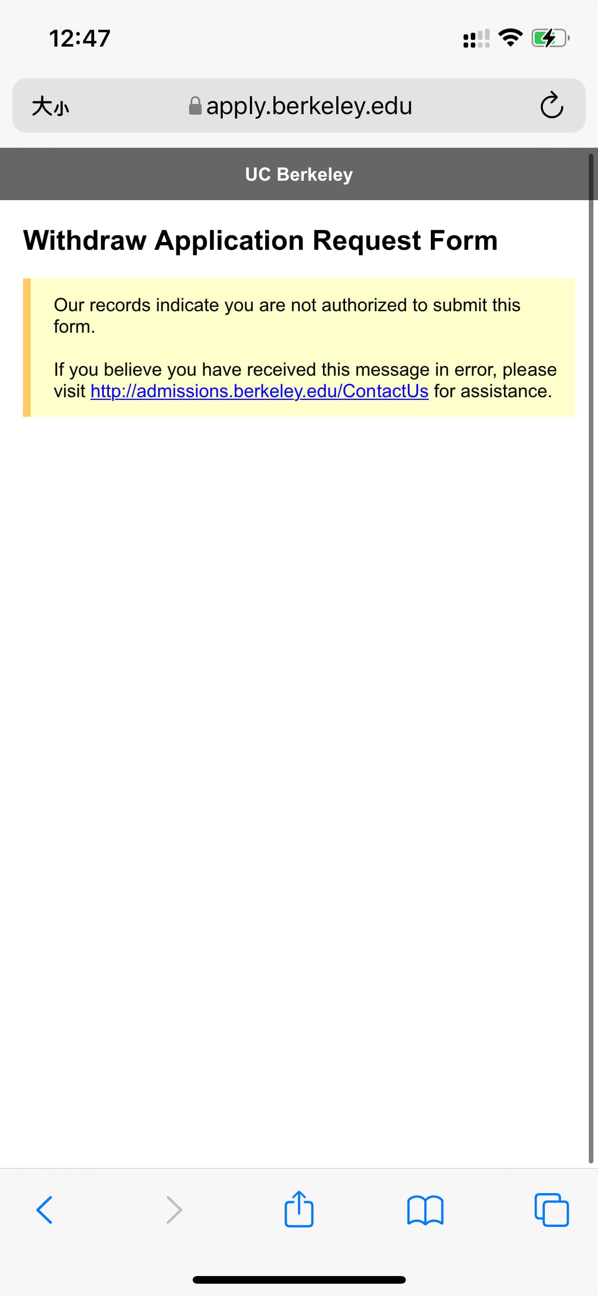 I could not access the welcome event and have this “I am no longer interested in attending UC Berkeley and wish to withdraw my application.” message in the withdrawal form. What does this mean?