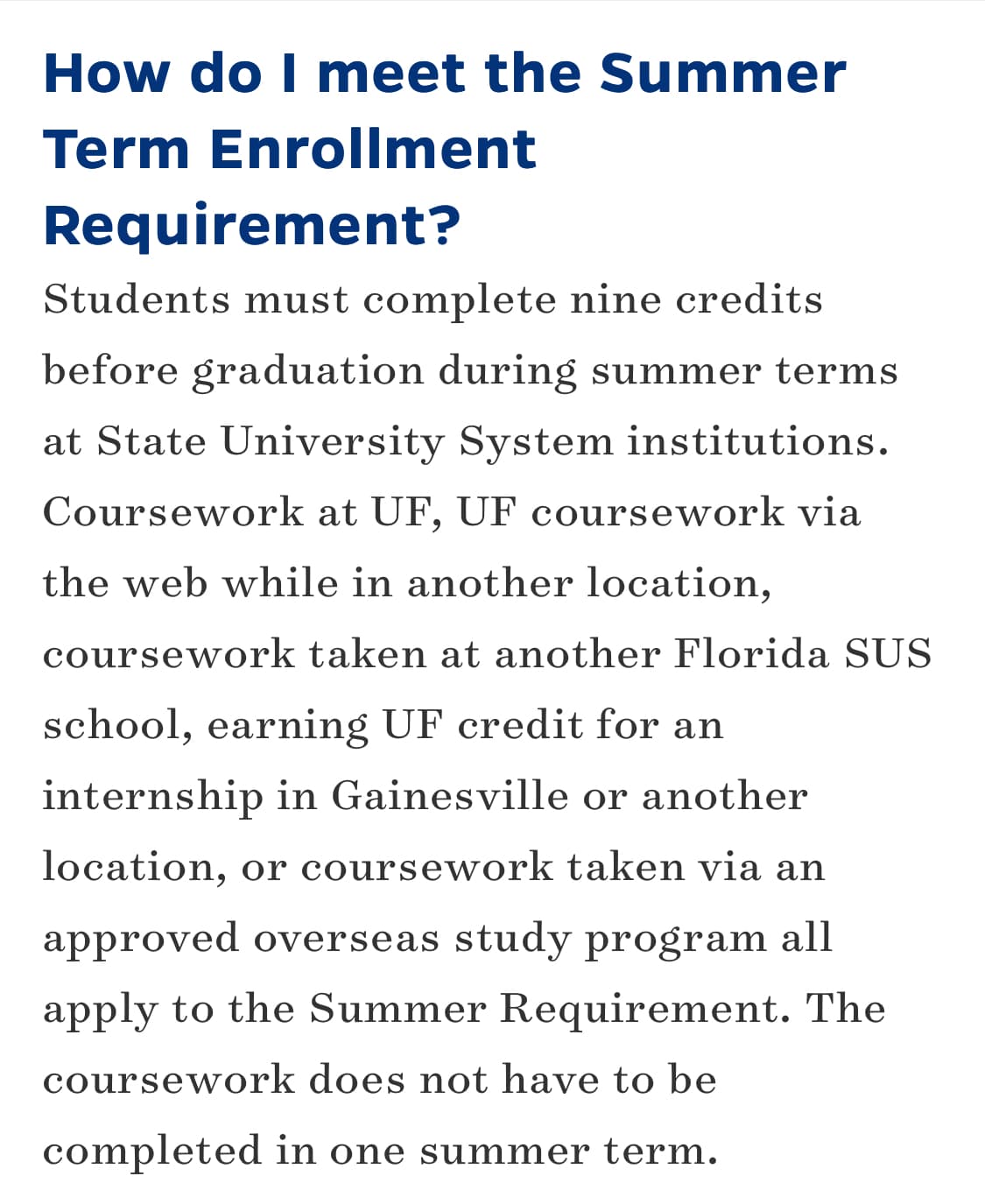 Agree with what twoinanddone said. This is a state-wide mandate for all the Florida public schools, however UF gives a lot of flexibility regarding how this requirement can be fulfilled.