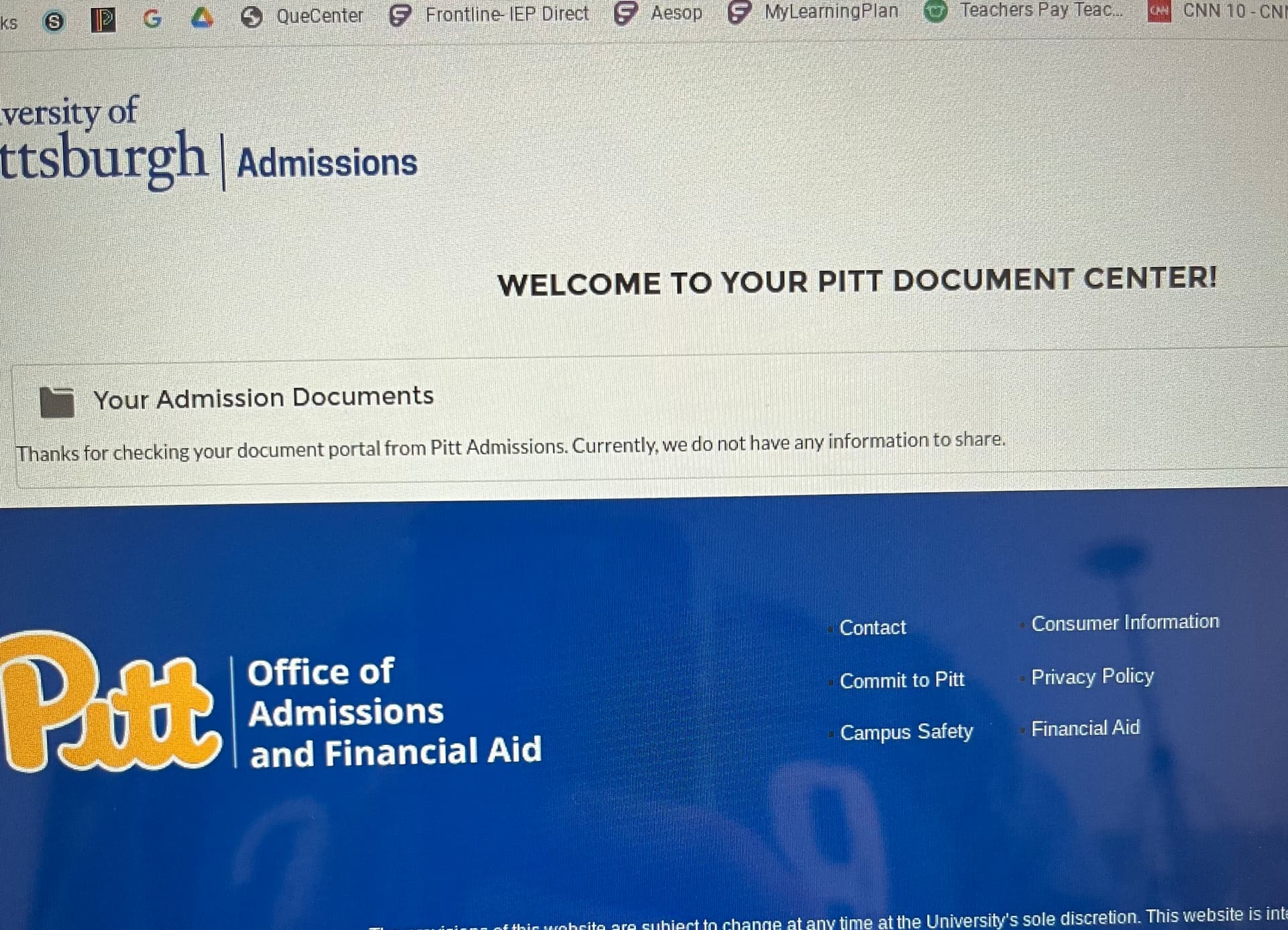 Is this the screen I am supposed to see when I log in to the Pitt Document Center? Doesn’t seem right to me. We received an email that her application was received on 9/30.