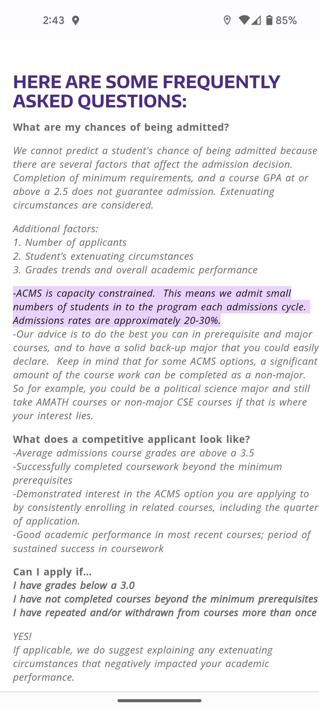 Hi, I would love to get some guidance if anyone had some experience with UW. My son applied for OOS CS but got into Pre-Science. How difficult is to get into major " Applied and Computational Math Sciences" and what are the criteria they wanted in applicant. Is it again same as an undegrad application where we have no clue what colleges are looking for?