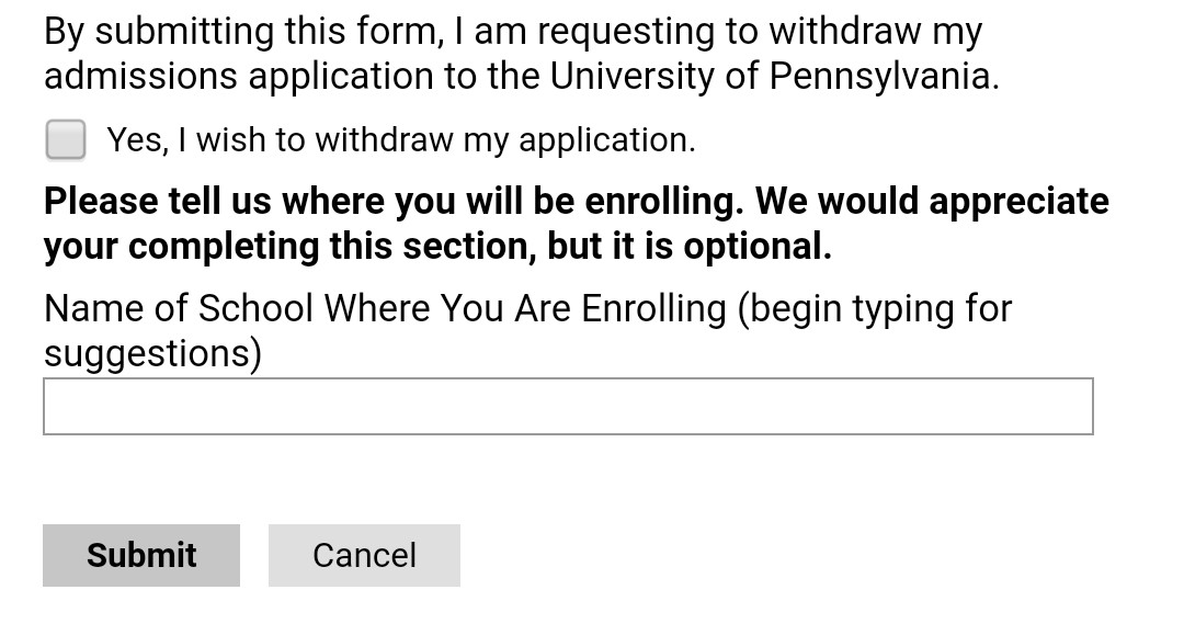 H, Y, S, and Penn embedded specific urls to withdraw, but there is no guarantee that the bug/feature has not been fixed by the application service provider (seems like same system with a specific school customization is being done).