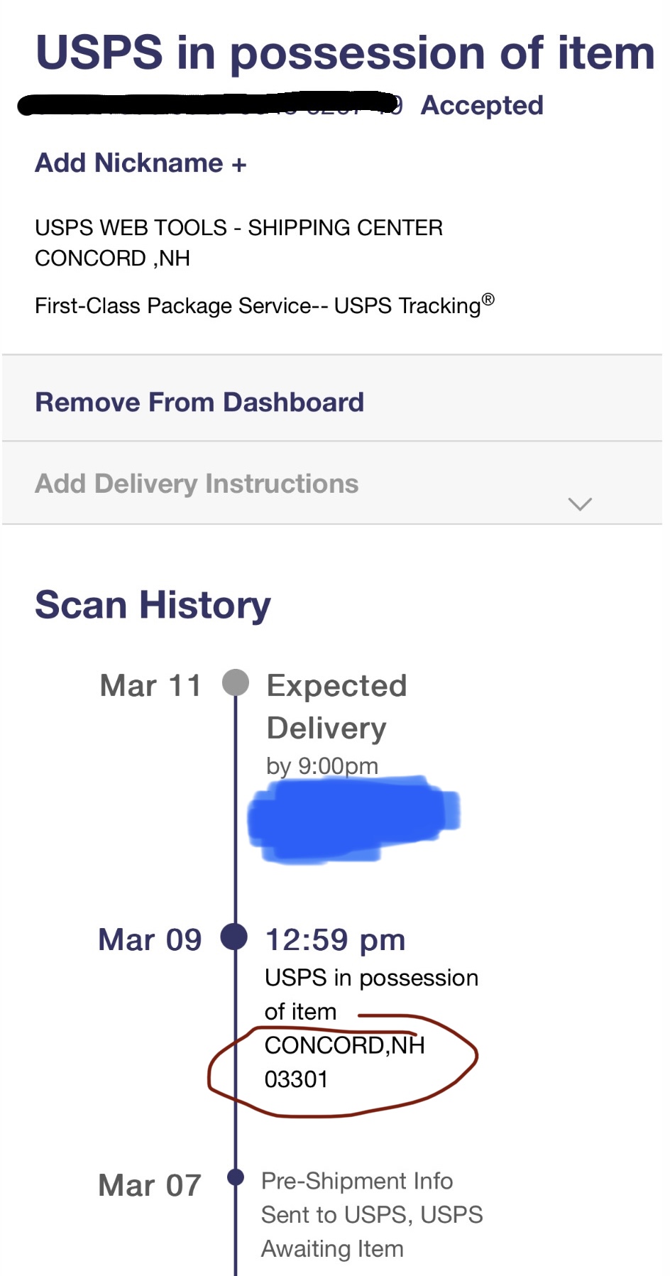 USPS package from the right zip code has been scanned, at about the right time to match their ig stories! (They had on their stories images of them going to the PO and you can see the zipcode of the PO on wall;)