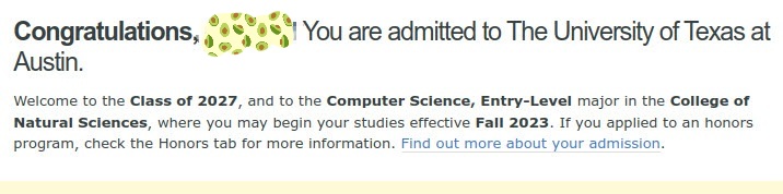 Did he get into the Honors program too? Trying to understand when that gets updated. My son got into CS too