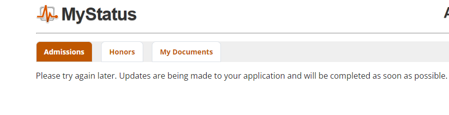 What do you see on the main page of the admissions portal? Is it âError 503: Must declare the scalar variable â@idâ.â or soemthing else?