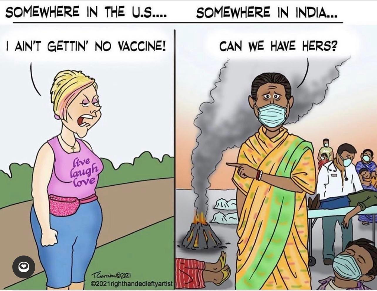 There are people on the other side as well who are making money from this- big money. My vaccine reluctant friends point that out. Itās true, but without the vaccine, how do we end this???