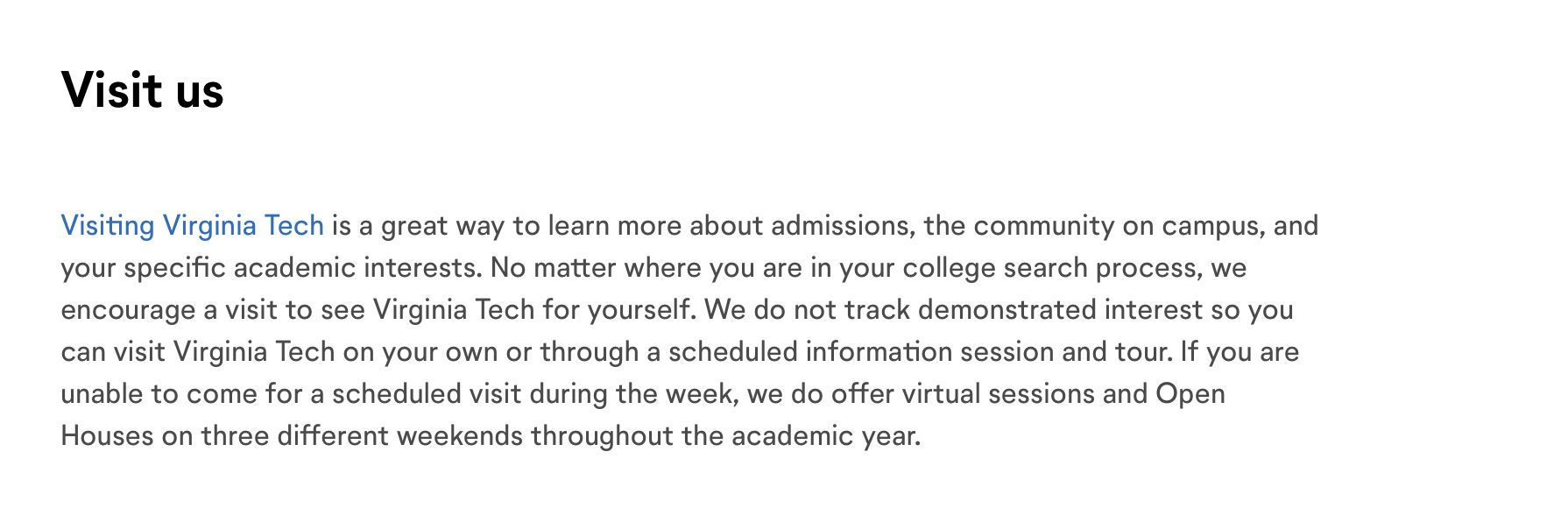 Took an official tour of campus last summer with a tour guide, went on several virtual meetings, and clicked on some of the links, but still waitlisted for COE. Just not in the cards this year.