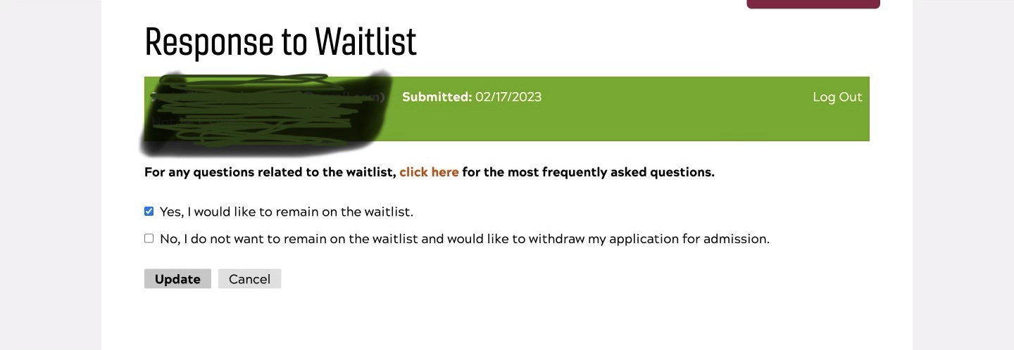 This is what my daughters says. But now there is a second question “I have read and understand the waitlist frequently asked questions provided here.”