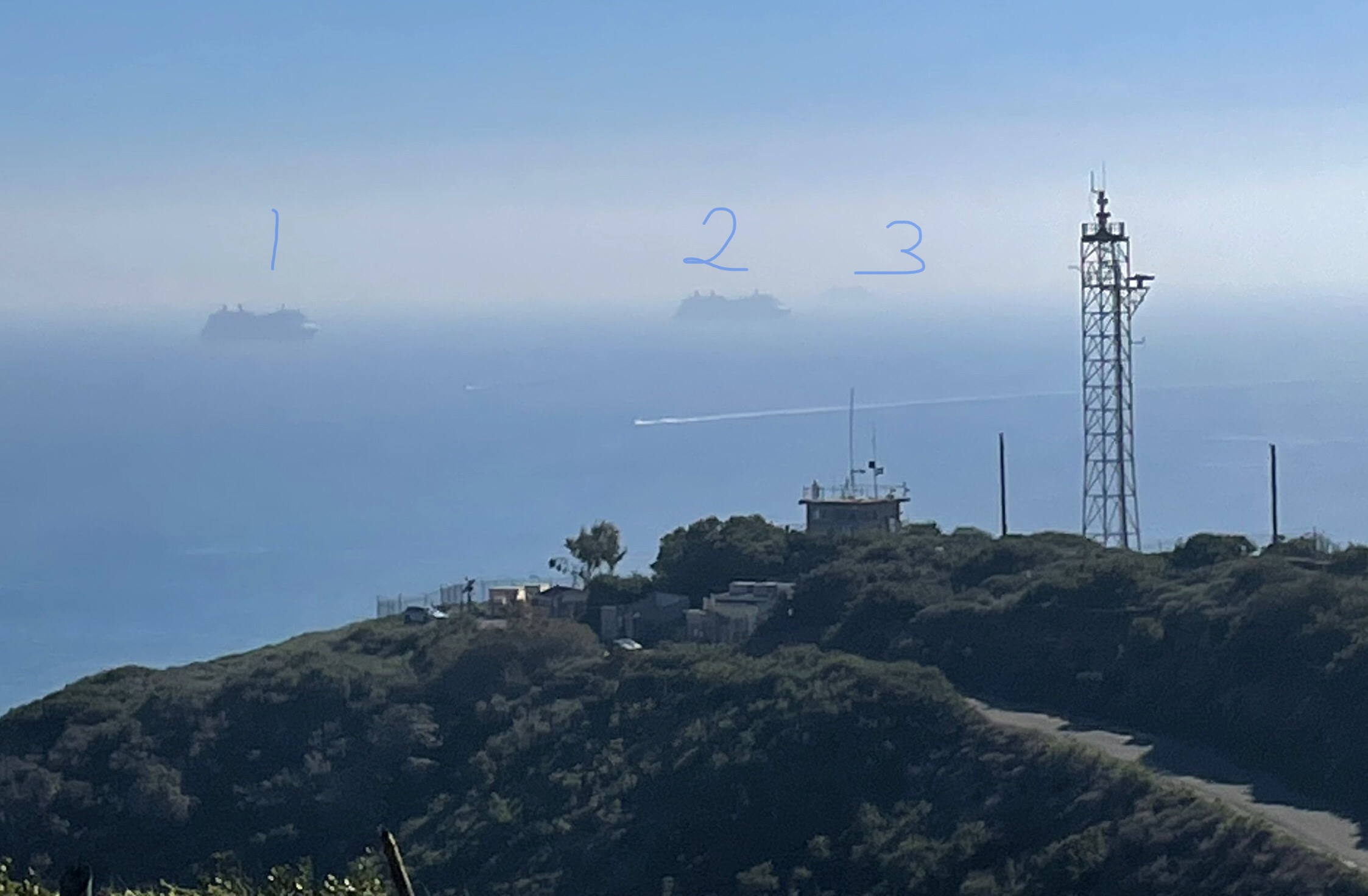 I took a quick run down to Cabrillo National Monument hoping to see whales. No whales sighted, but there were not one, not two, but three sidelined cruise ships parked outside the bay. We’ve had one or more hanging out for most of the pandemic.